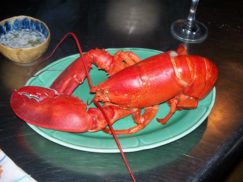 The second photo is from about an hour later after our two expert chef hosts had worked their magic. Bill and I agreed that this was the most tender lobster we’d ever eaten. Thanks, you two, for the perfect welcome to Maine. Now the challenge is on to do something similar for you when you visit us in Carcassonne.