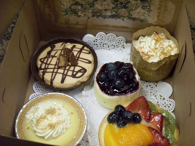 Although we’d been to Nana Teresa’s Bake Shop www.nanateresa.com only two weeks ago when we’d gone to the French consulate in Miami, it was time to return. One of Bill’s favorite expressions at places like ice cream shops or candy stores, for example, where you are faced with endless choices is “I’d like one of everything”. This time he said it and that’s exactly what we got–one of every kind of pastry that they had on their shelves. You can see a few of the treats in this photo of key lime mousse and tart, peanut butter and chocolate pie (yum!), blueberry cheesecake, and a fresh fruit tart. If we get something like one of these everyday in Carcassonne we’ll be two happy guys.