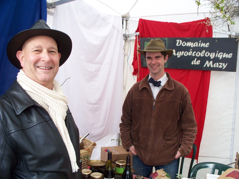 If you happen to be on Facebook you probably got a headstart on today’s blog post. Last night Bill and I were at the main town square, Place Carnot, for a fair celebrating local products. There were representatives from area farms that produce almonds, cheese, honey, poultry, other meats, and of course, wine. Since the city was a major sponsor of the event, the mayor and several deputies were in attendance and that’s the photo, with us, that Bill has shared elsewhere.