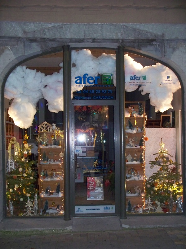 As in many cities and towns across France, lots of retail shops in Carcassonne follow a traditional schedule of being closed for lunch, and not open at all on Sundays. All of that was cast aside last weekend when the entire downtown surged with excitement: hoards of shoppers, a roving Christmas band, all lights on, all doors open, markets and festivals filling the streets. The city provided a Christmas tree with basic ornaments already attached to any merchant who wanted one. Those same shop owners were encouraged to decorate their windows with the chance of winning a prize. It seems to me that we were the winners as we wandered around town enjoying the music, the decorations, and the festive atmosphere we found throughout this city dressed up in its finest!