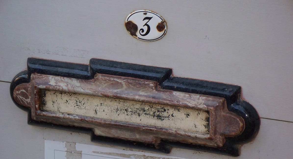 When watching television we find it much easier to understand what’s being said if we can read the words as they are being spoken, so we always have French language closed captions turned on. You would think, therefore, that written numbers would be a breeze but even they sometimes are intriguing. The numbers one and seven are written differently from what we are used to so the first time I saw the menu board that you see here, I was surprised that a sidewalk café meal would be advertised for 77 euros. You’ve probably guessed that the number one, especially when it’s handwritten, typically has a tail at the top that often extends all the way down to the base. To see how to distinguish between a one and a seven, take a look at this interesting iron door that has what I think of as a regular 7 on the right and then on the left the European 7 with a line through the center just to avoid any confusion. Maybe they get a lot of American visitors.