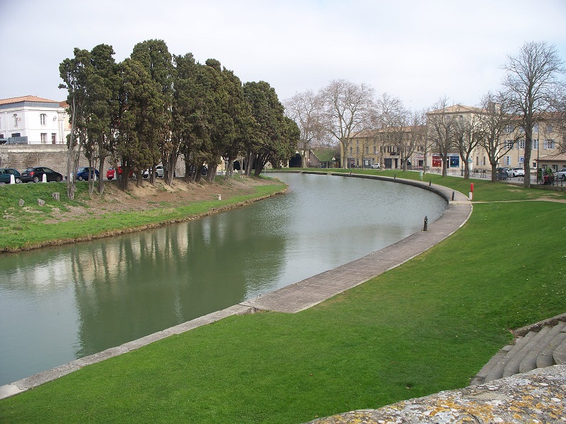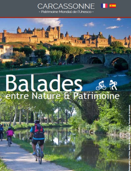 My guess is that the woman who wrote those words had read one of the many booklets that the city publishes about the range of opportunities around town. The top photo is the cover of what we might call “Walks Between Nature and Heritage” that take you along riverbanks, past locks on the canal, through Medieval cobbled streets, around the lake, and out into the surrounding vineyards along a Roman road towards an 11th century priory with the Pyrenees in the background. You could spend an hour, the morning, or an entire day on foot or bicycle exploring the sign-posted paths.