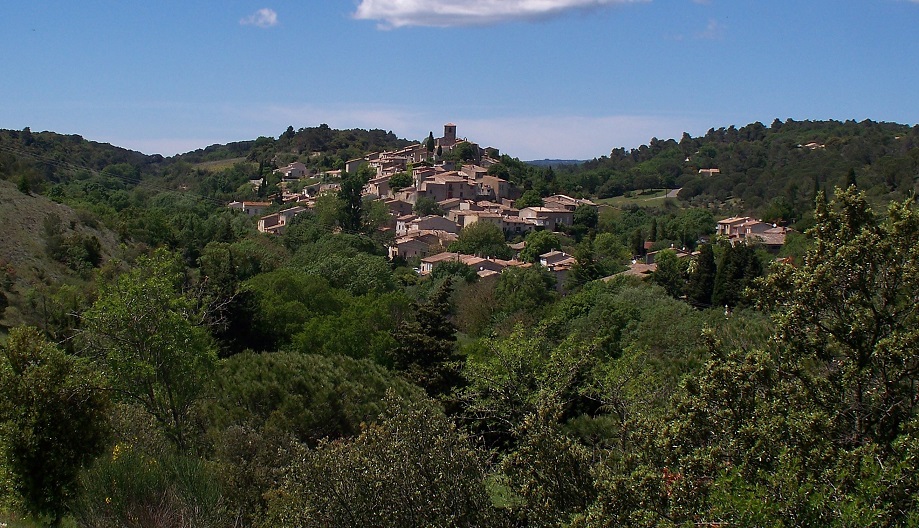 The drive up from Carcassonne took us through rolling fields of grapevines soaking in the sunshine on one of the 300 days each year that “sunny” is in the forecast. As we approached Aragon, Francis stopped the car so that I could take the photo you see at the beginning of this post. It has that picturesque charm long associated with small French villages: sandstone cottages with terracotta roofs circling round in a spiral that culminates with the church at the top. But that was not our initial destination.