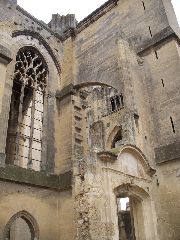 With an 11:30 AM lunch reservation in mind, we headed out of the train station and right over to the Canal de la Robine, a branch off the Canal-du-Midi that flows through Carcassonne. This route we knew well since it’s easy to follow the water right to the covered market and all of its treats inside. After numerous plates of tapas and a glass or two of wine, we crossed over the canal to the main square that is dominated by the 13th century Archbishop’s Palace that now serves as city hall. That Roman road that someone asked us about, was only discovered in 1997 and is now prominently displayed right in the center of the square. Behind the Palace is the Cathedral of St. Just, begun in 1272 but never completed because it would have required dismantling part of the town wall that served an important defensive role at the time.