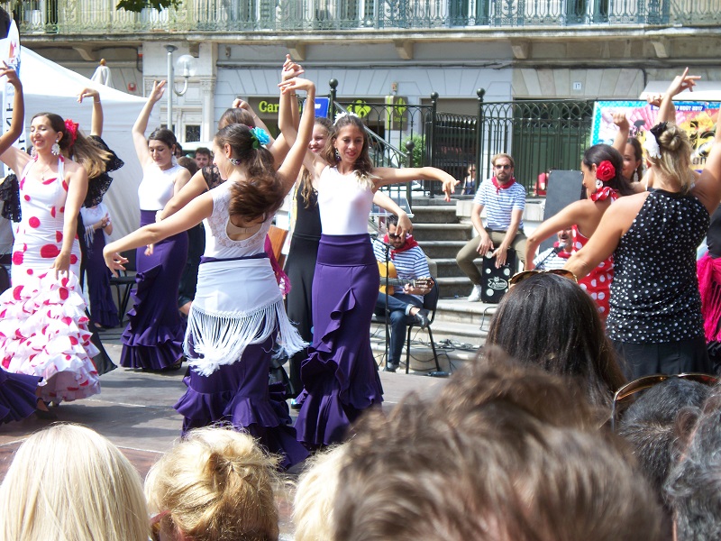 For 4 days, our French city turns Spanish with the arrival of wandering bands, folk dancers including rumba, flamenco, and the Sévillanes from Seville and a village of bodegas selling traditional food and drink. Nightly free concerts featuring well-known Spanish groups fill the streets and the air with music, light, and dancing. Even many of the local restaurants that typically serve French cuisine create special menus to join in the fun. With all of this exciting activity going on all around us, only a short walk away and most of it free, you can guess where we’ll be this weekend! Olé!