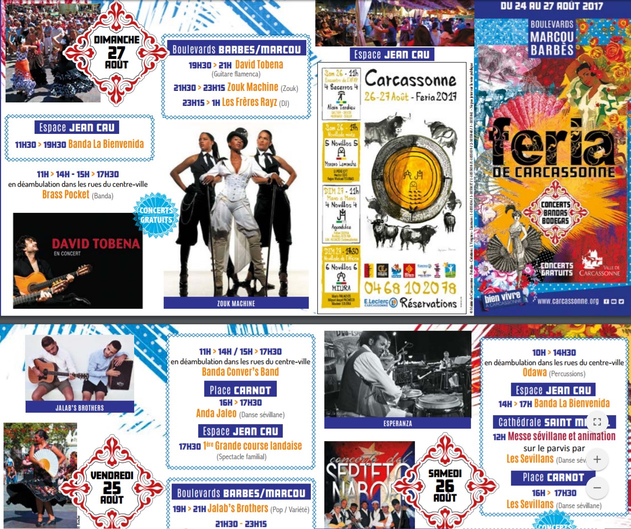 As the crow flies, we’re only about 50 miles (80 kms) from the Spanish border but it hasn’t always been that way. Prior to 1659 the fortress here in Carcassonne along with 5 other area castles known as “The Sons” stood watch over the frontier just a few miles away. After the Treaty of the Pyrenees was signed the division between France and Spain moved south to the highest ridge of the mountain range of the accord’s name where it still remains. Given the centuries of rule that our neighbors to the south maintained in this general region it’s no surprise that their influence still exists today. A celebration of that culture is observed every year in Carcassonne with the arrival of La Féria!