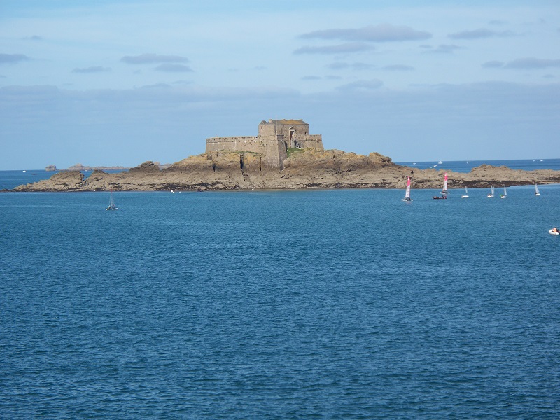With our visit complete it was time to board the ferry and head for Jersey. Soon after we departed Bill was able to look back on St. Malo and get a photo of a familiar skyline and of Fort National that was built in 1689 to repel English invaders. I’m happy to say that when the ferry brought us back by this monument a week later, we two English-speakers felt nothing but “welcome back”.