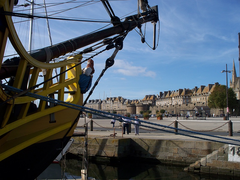 Not far from that entrance we admired the beautiful restoration work in progress on Étoile du Roy, a replica of an 18th century warship that’s now used for special events or charters. Back inside the granite walls we stopped at the cathedral that was built in the middle 1100’s and houses the tomb of explorer Jacques Cartier who claimed Canada for France in the early 1500’s.