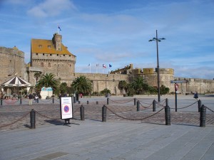 We can easily get by train from our part of the south of France to the Normandy coast several times a day but the ferry from there to the Channel Islands only goes once a day outside of the summer season. Since we can choose when to travel, we leave July and August to the families who can only travel together when schools are on vacation. That meant arriving in the port city of St. Malo after the boat had departed for the day but it gave us an opportunity to overnight in a city we’d only seen for a few hours as a side excursion on one our our previous visits to Brittany.