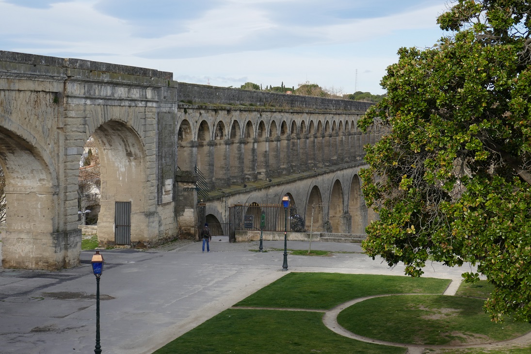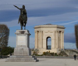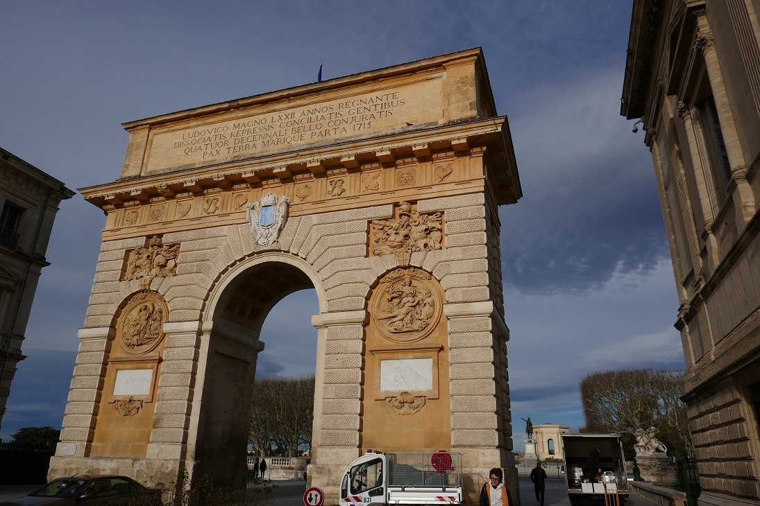 Speaking of places to walk, it was a short stroll from there over to the Promenade du Peyrou, a square that was begun in 1685 with five purposes: as a viewpoint to the mountain ranges of the Cévennes and the Pyrénées; to display a statue of Louis XIV (the Sun King); to showcase an Arc de Triomphe that replaced one of this formally-walled city’s gates; to house the Chateau D’Eau which is a very classy looking water tower; and as the endpoint of a Roman inspired aqueduct from 1753 that is still used today to supply water to the decorative fountains all over town.