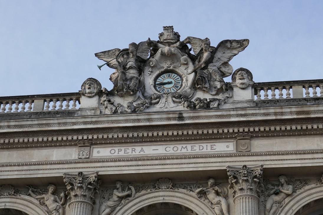 We had last seen Anne and Eliot in the beautiful city of Nîmes where we had spent the morning and afternoon exploring while meeting them midday for a fresh salad and a glass or two of local wine. That was so successful we planned a similar schedule for this day. We hopped aboard an early train with our round trip tickets that cost 2 euros per person that put us in the heart of Montpellier in time to see office workers beginning their shifts and students, who represent 15 percent of the city’s population, scurrying (or not) off to their classes. Our first stop had a much less-serious name than where those people were all going: La Place de la Comédie. Named after a theater that stood until 1785, this central square is surrounded by sidewalk cafés and in the middle is a fountain called The Three Graces built in 1790. The opera house here dates from 1888 with the nearby Parc L’Esplanade following soon thereafter where theater goers could, and still do, promenade before and after the opera.
