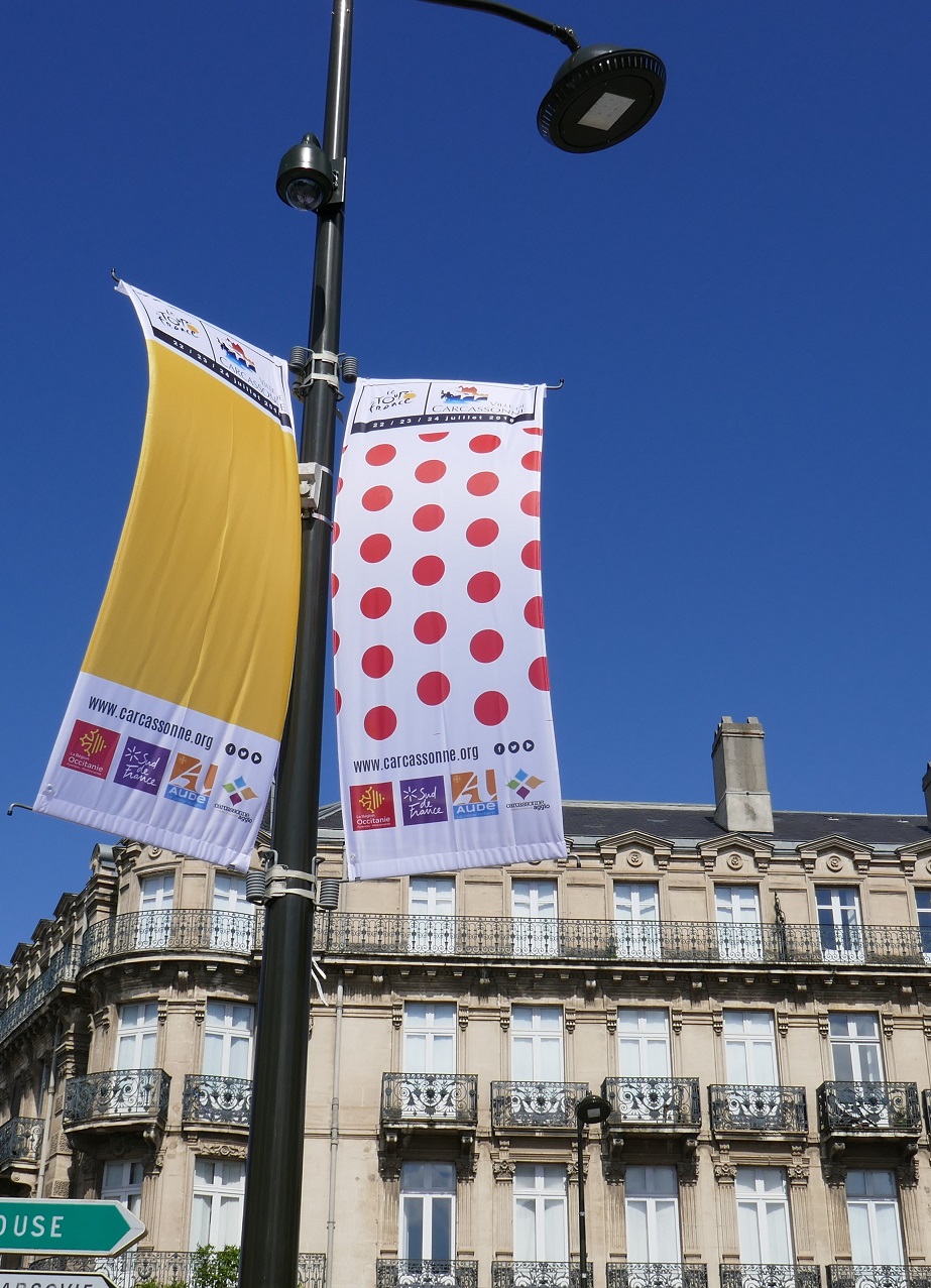 What started in 1903 as a way to sell more newspapers has turned into a sporting event bigger than the Super Bowl with 3.5 billion TV viewers worldwide. The racers cover a distance of 3351 km (2082 miles) in 21 days with only 2 rest days, one of which was right here in Carcassonne last Monday. Cities pay for the Tour to stay in their communities but I read that for each euro a government agency spends to lure the race to them, tourists and other visitors spend three euros so it is a lucrative investment for the area.