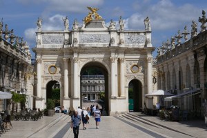 Since the direct train from Carcassonne arrives daily in Nancy right after lunch, we had plenty of time on our first day there to explore the area immediately surrounding the 19th century mansion where we were staying. Out the front door was the city’s largest park, Pepinère, and on the back, the huge Place Stanislas where we went in search of an afternoon beverage. That was easy to find since sidewalk cafés abound, overshadowed by towering palaces with gilded fountains on every corner. Drifting from the open windows of one of those giant ballrooms classical music and applause appropriately welcomed us into the grandeur of the 18th century.