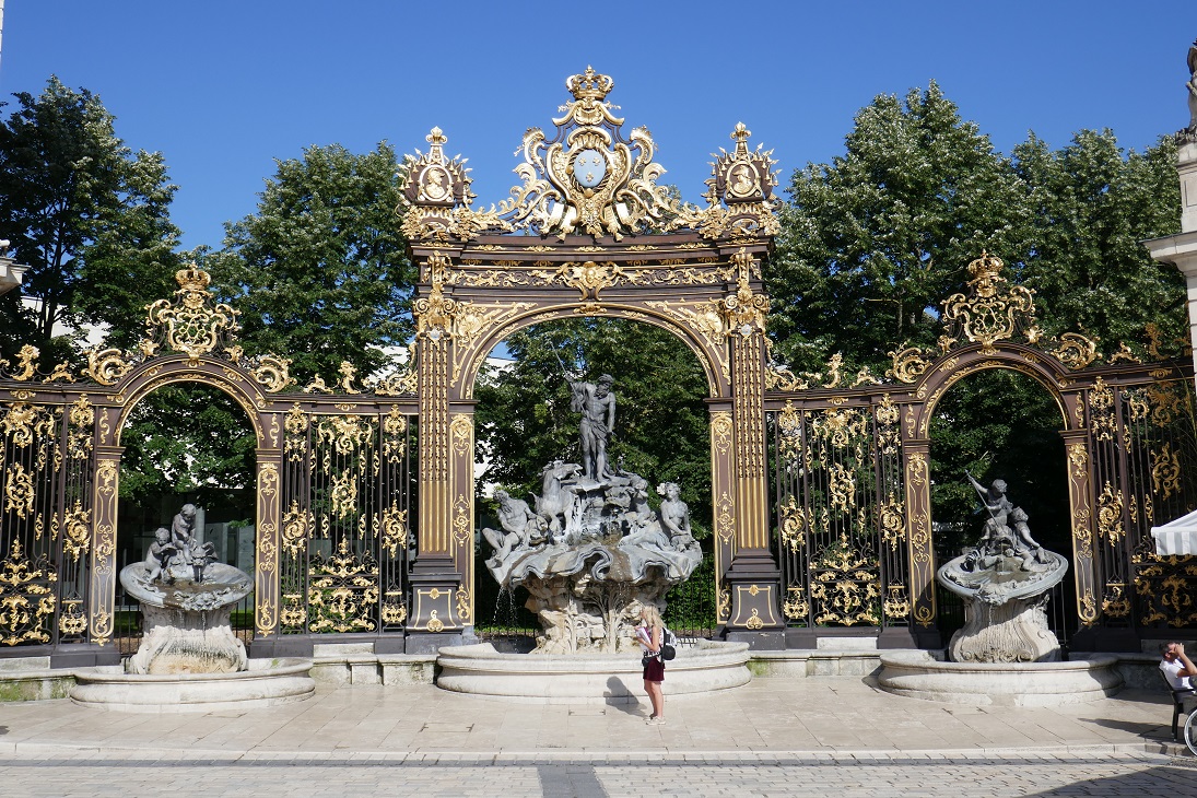 Since the direct train from Carcassonne arrives daily in Nancy right after lunch, we had plenty of time on our first day there to explore the area immediately surrounding the 19th century mansion where we were staying. Out the front door was the city’s largest park, Pepinère, and on the back, the huge Place Stanislas where we went in search of an afternoon beverage. That was easy to find since sidewalk cafés abound, overshadowed by towering palaces with gilded fountains on every corner. Drifting from the open windows of one of those giant ballrooms classical music and applause appropriately welcomed us into the grandeur of the 18th century.