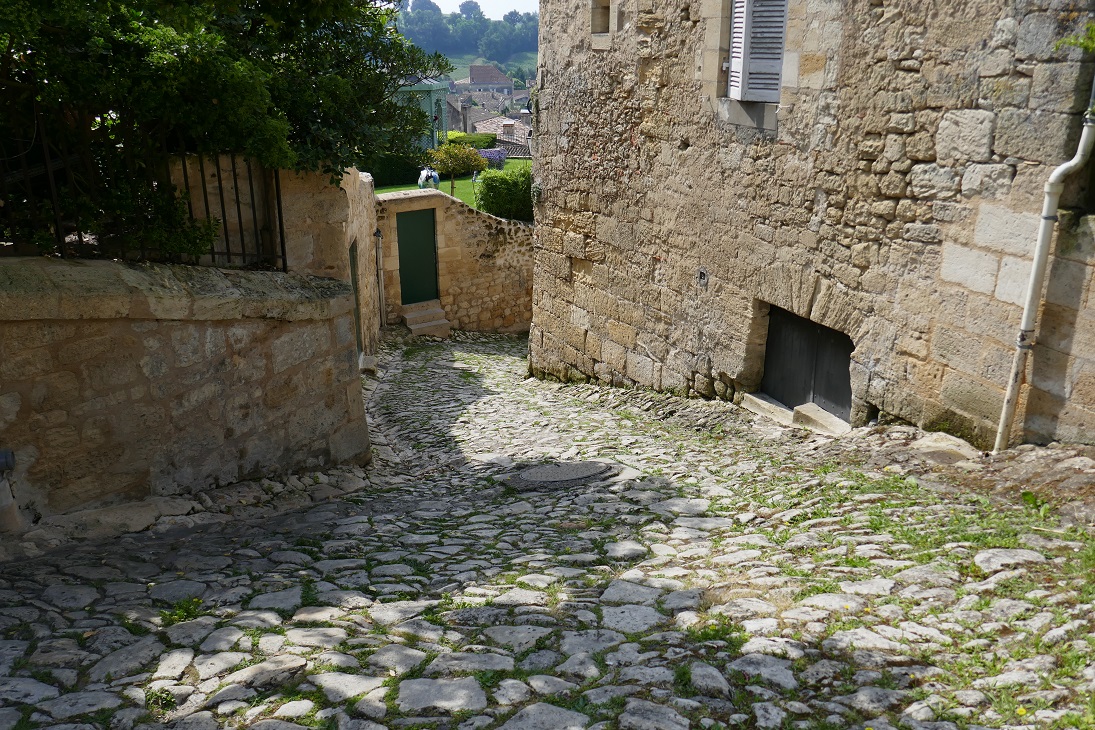 We had been steadily climbing uphill since we arrived at the town limits and our next challenge was to go up the Tertres which technically translates as mound or hillock but the tourist office rightly calls them Steep Streets. The paving cobblestones all arrived as ballast in ships from England and were replaced with barrels of wine for the return to that island nation. I’m glad that it wasn’t raining the day we were there since those stones have had hundreds of years to get smooth and slippery.