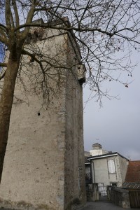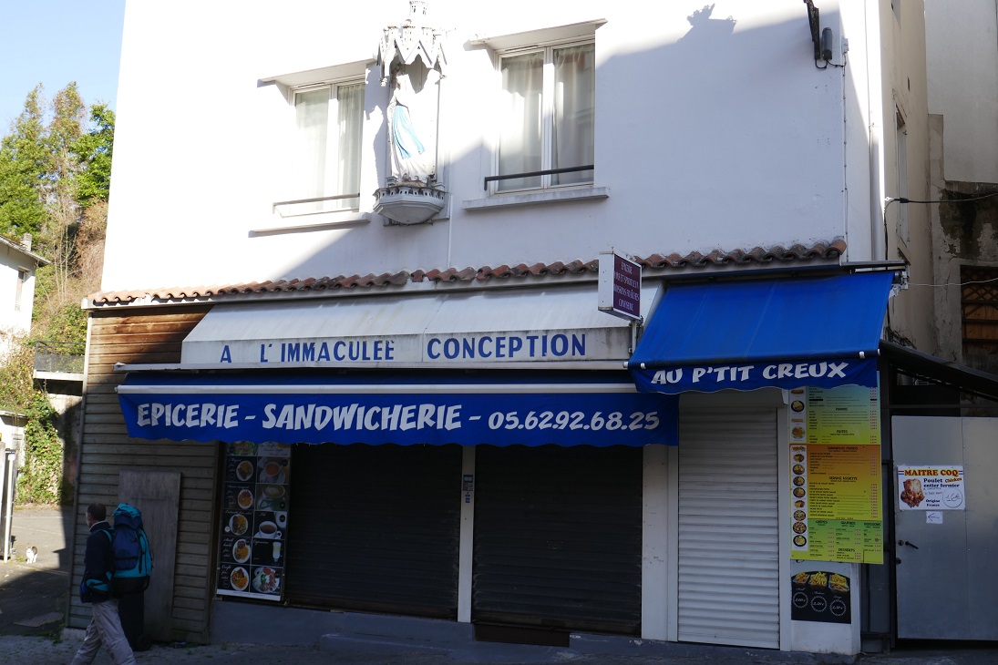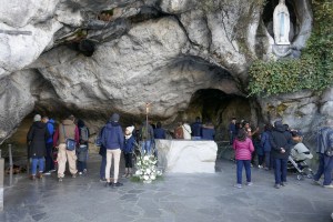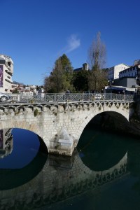 An easy 20-minute walk and the most distant site from the train station was our first stop of the day, the Sanctuary of our Lady of Lourdes, below which the grotto is located where the visions were supposed to have taken place. I knew that up to 6 million people visit this city each year but, perhaps like in Carcassonne, there aren’t many on a cool winter’s day. With our photographs taken there, we then began one of the two self-guided walking routes that the Tourist Office has designed: Evoking Lourdes in the Middle Ages. The other is called Bernadette’s Life Path that will take you past the mill where she was born, the house in which she lived and several other buildings important to her story.