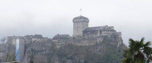 To symbolically step back into the Middle Ages, we crossed the river Gave de Pau on the Pont Vieux (old bridge) built during that time period, which gave us access to another major structure from the 13th century, the Garnavie Tower. From the southside It helped to protect the city as well as our next stop, the castle. I particularly wanted to go here because of the shared legend involving Charlemagne and the fortifications in both Carcassonne and Lourdes. It seems that a Moorish chief and his troops had barricaded themselves inside the castle while Charlemagne decided to wait indefinitely outside until the food ran out. Months later an eagle that had captured a trout from the river dropped it at the feet of the starving chief who immediately threw it over the castle wall to the army below. In our town, it was the last remaining pig rather than a fish but the result was the same: the Emperor concluded that it was pointless to continue the siege if the occupiers still had food inside so he left while the castle residents celebrated. The entrance fee that also includes the museum and even an elevator to get you up is 7 euros per person.
