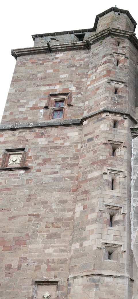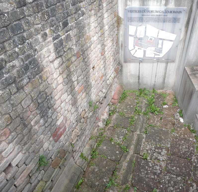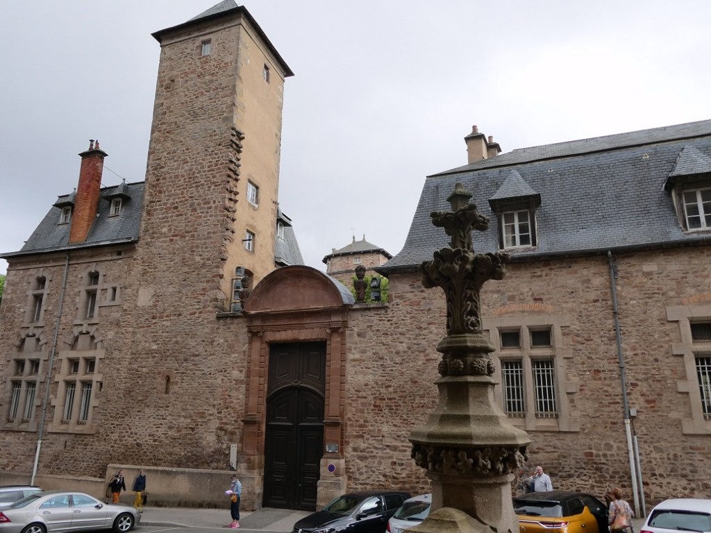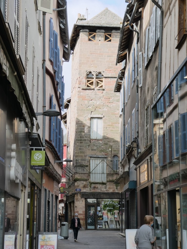 In the centuries following the founding of Rodez by the Celts in the 5th century BC, it was occupied by Romans, Visigoths, Francs, Moors, the Dukes of Aquitaine, the Counts of Toulouse and during the 100 Years War, the English. Witness to many of the armies, the Cathedral Notre Dame has existed since at least 516 with the current structure dating from 1277 and even served as part of the town walls. That was clearly visible to us by the presence of the slit windows (photo to the right) used for defensive arrows in the lower portion of the wall below the rose window.