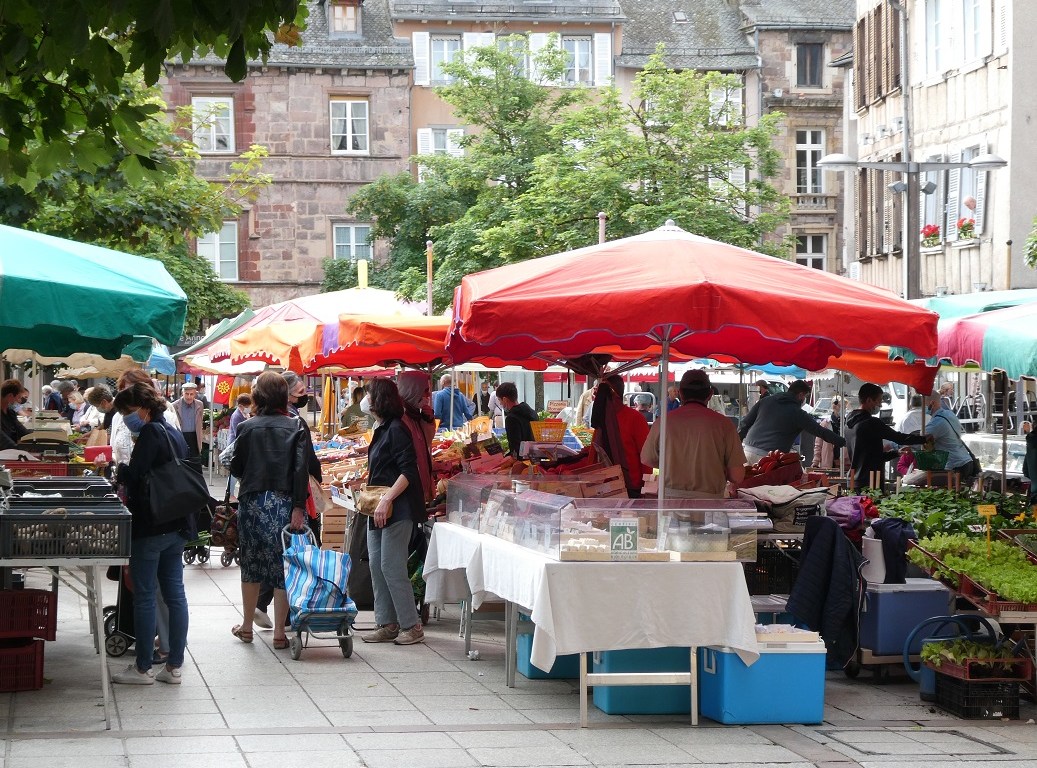 Bill and I go to the open air market each Saturday not just to get the week’s supply of fresh fruit and vegetables but because it’s a lively social event and one that’s observed in thousands of towns all over France. We’ve even picked up supplies at neighborhood markets in Paris when we’ve been there on vacation and rented apartments with kitchens. It’s such a popular event that it was on our list of must-haves when we were searching for a place to live and there’s a website (link below) devoted to market days and locations. It was there that we looked for the information to decide on which day to make a visit to Rodez while we were staying in Toulouse and could make easy one-train day trips from there.