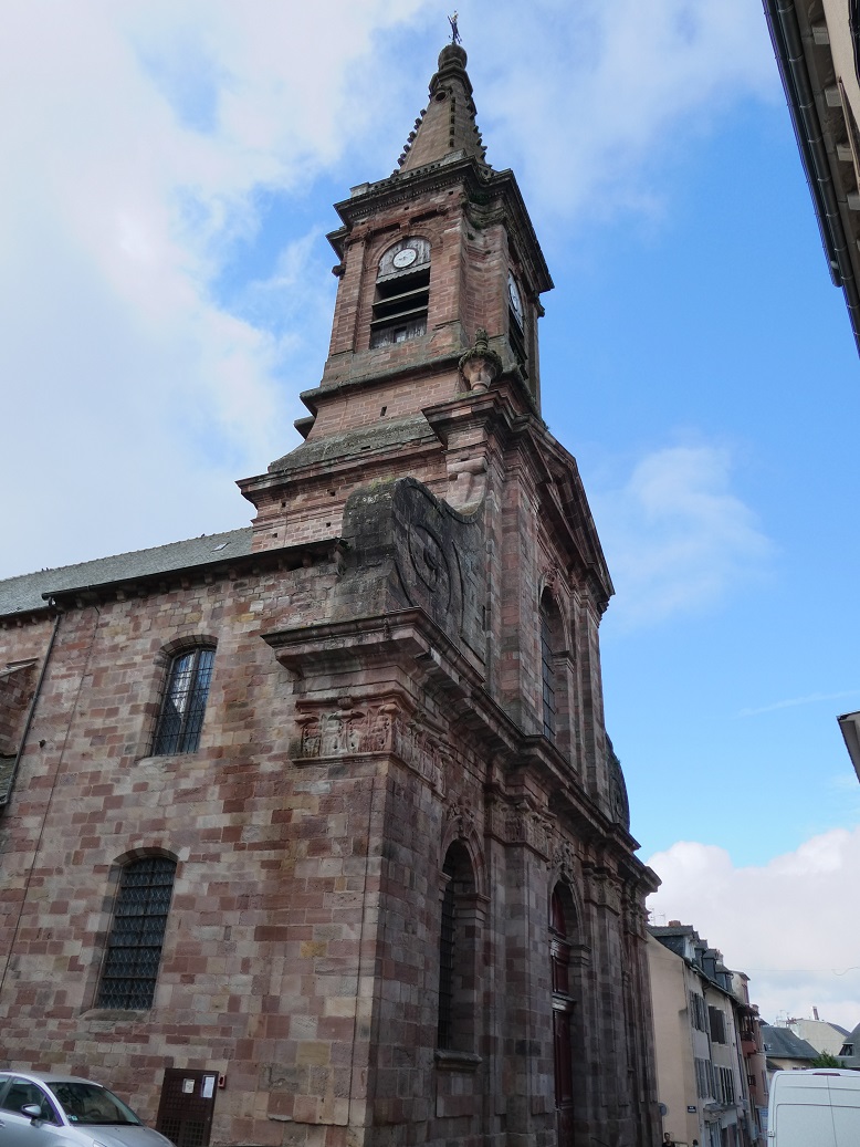 While brick was the dominant building material in Montauban, which I wrote about last time, in Rodez it’s sandstone. Although having a similar pink tint, this rock doesn’t appear to have the durability of its human-made colleague with the next building that we saw illustrating the point. The Church of St. Amans first welcomed worshipers in the 1100s but had to be reconstructed in 1758 because the building was crumbling. Sandstone was again used, including some stones from the original construction, so perhaps it’s sturdier than I suspected.