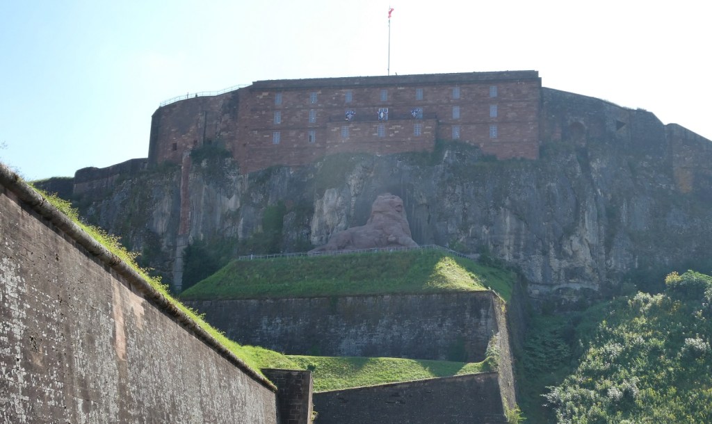 Our primary target for this day trip from our base in Mulhouse was not going to be easy to miss both figuratively and literally. After all, we went to Belfort specifically to see the Citadel and its Lion and given that the statue alone is 22 meters (72 feet) long and 11 meters (36 feet) high, we were impressed soon after crossing the river a short distance from the railway station. The name of the sculptor was familiar to us, Frédéric Bartholdi, since he designed the Statue of Liberty. His work towering over us was created in 1880 as a symbol of French resistance during the Prussian invasion of 1870.