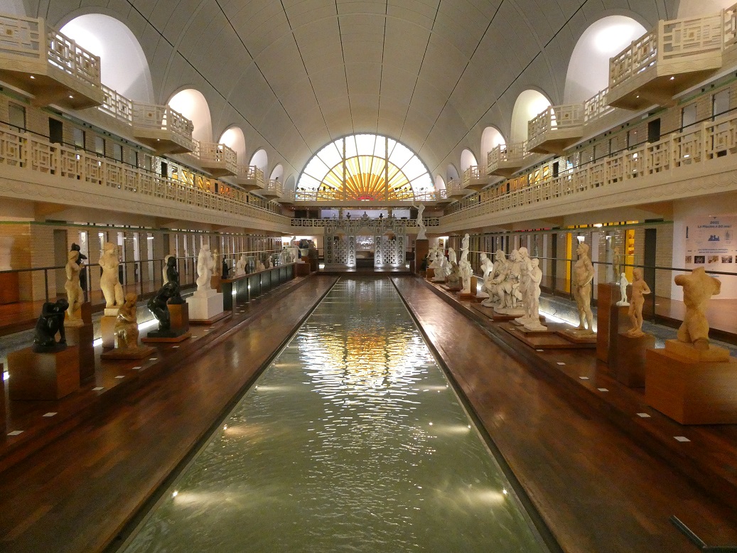 We rode the Metro (1.70 € per person, each way) for 25 minutes north to the town of Roubaix to visit a swimming pool, La Piscine, that was built in 1932 and later converted to an art museum. We especially wanted to admire the art deco style of the building and to have lunch in their dining room that has maintained the elegant look from that era.