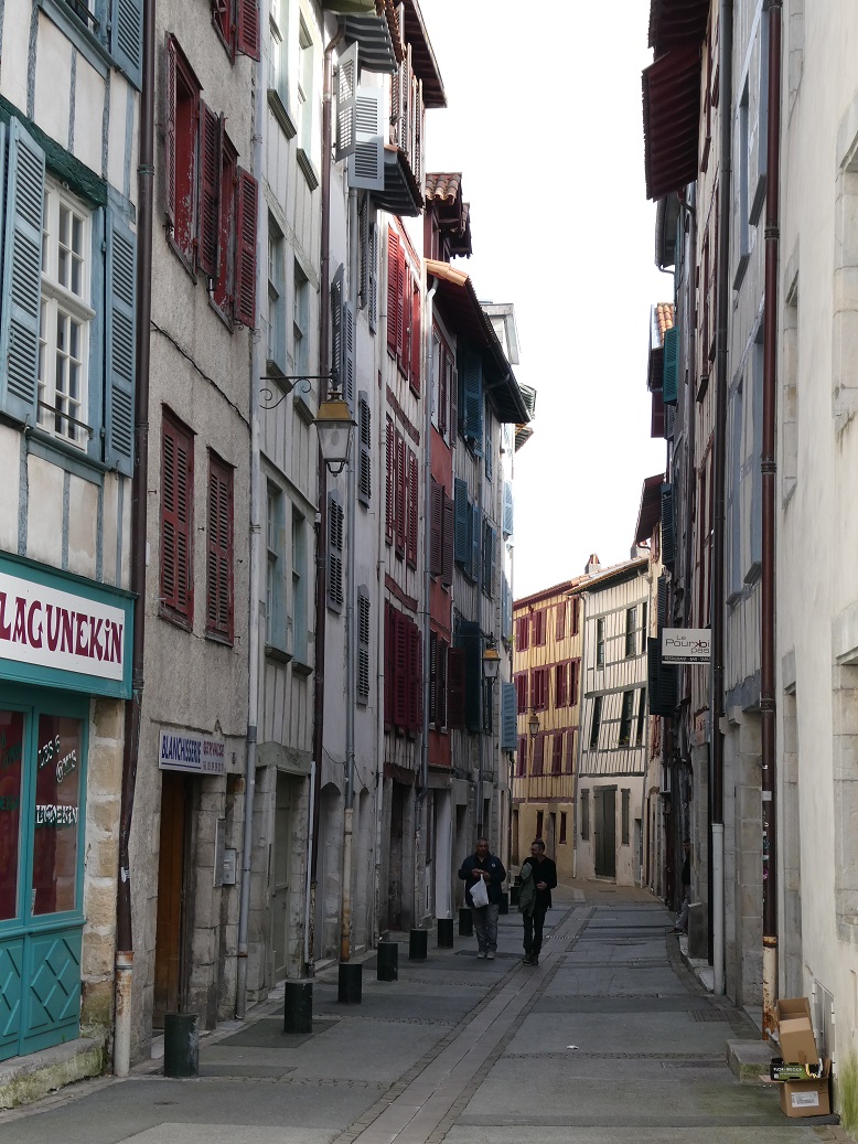 The designations of Grand et Petit (Big and Little) Bayonne seem to have evolved simply to distinguish the older part of town from the newer with the Old and New Castles discussed above being one example. To get a classic view of Basque architecture we walked along both sides of the Nive River to see the narrow, stone and half-timbered facades of both Grand and Petit Bayonne.
