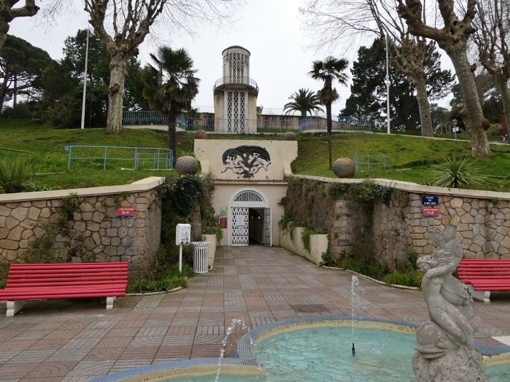 With cold weather visits now easily arranged in what might have been perceived as a summer-only destination, the aptly-named Ville d’Hiver (Winter City) was created to house all of the new guests. Many of these arrivals were tuberculosis patients hoping to benefit from the fresh air so most of these 19th century villas were constructed in sheltered spots in this hilly area that offers protection from strong sea breezes. Although you can walk up the winding road to the top, we took the easy way, with the elevator (free of charge at the park entrance on Avenue Régnauld) that lets you out inside Mauresque Park for the easy stroll downhill.