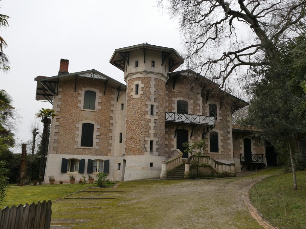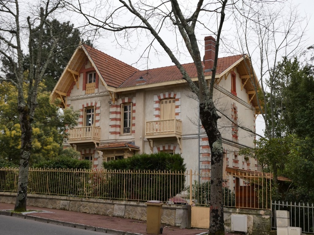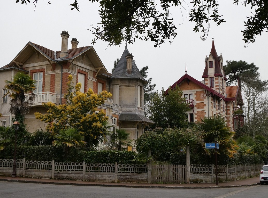 Photo notes: The large featured photo is Villa Coulaine (on the right) and in the first paragraph is the tower entrance to Villa Le Pin, originally owned by the railroad company chairman that first brought the trains to Arcachon.