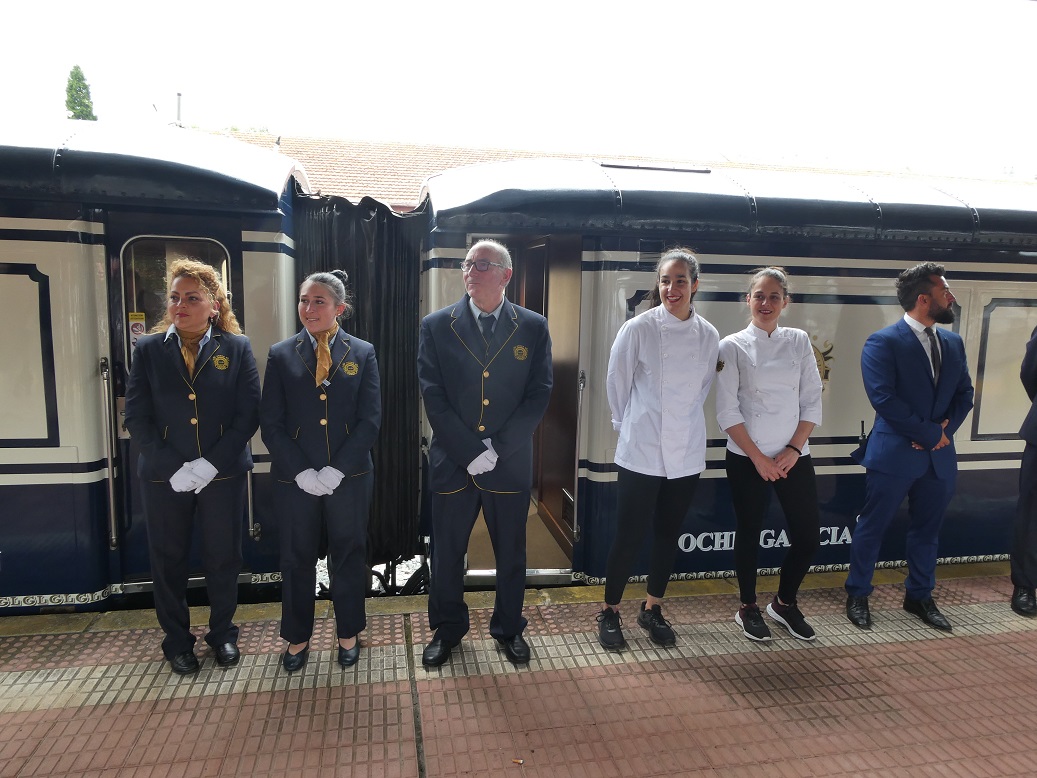 Our adventure started where lots of others normally end their journey: Santiago de Compostela, the final stop for pilgrims on the Camino de Santiago route with branches across Europe including one that passes through Carcassonne. Because we would be traveling on narrow gauge tracks we were transported to the beginning of the line at Ferrol where the train, a sparkling glass of champagne, and a delicious dinner awaited.
