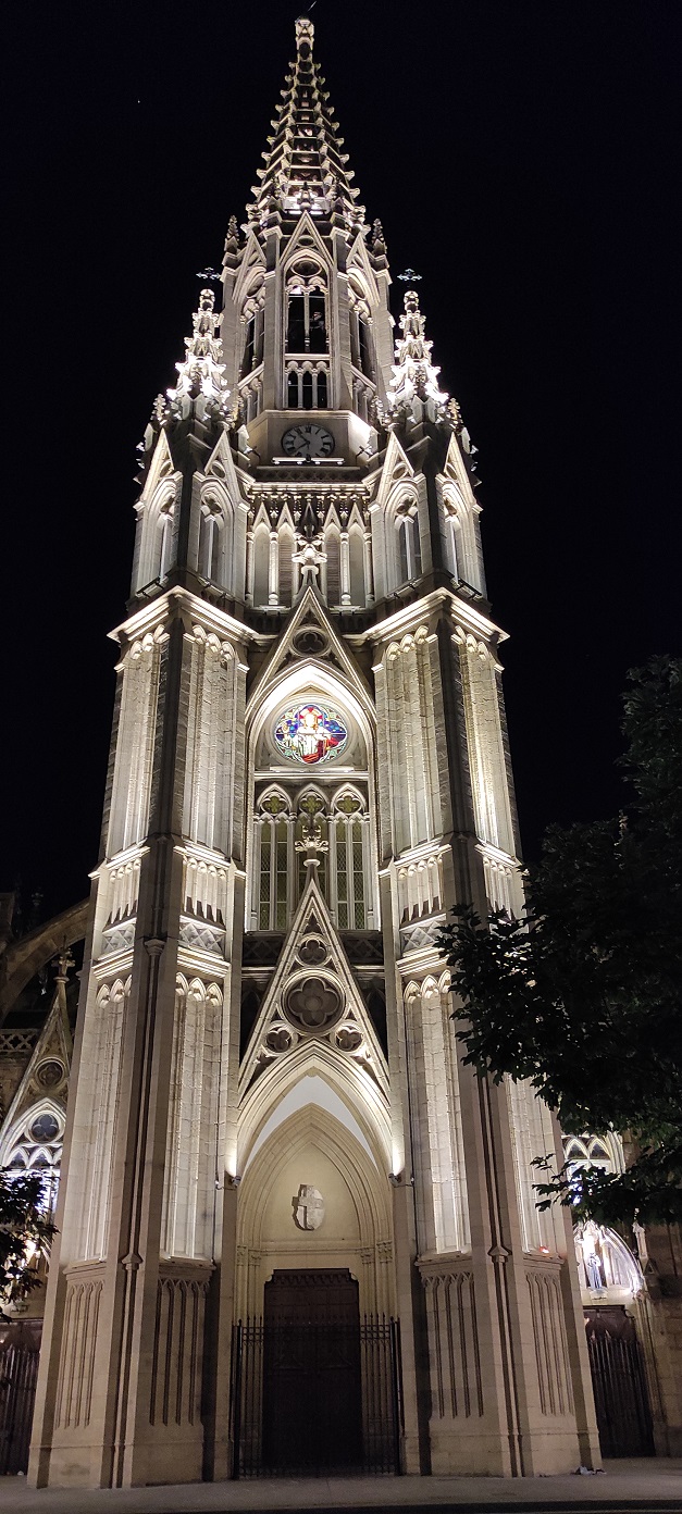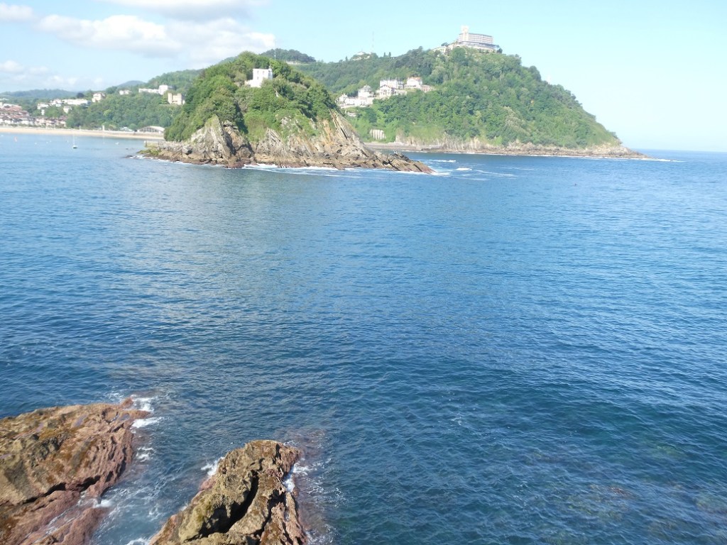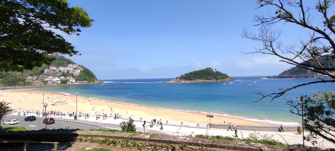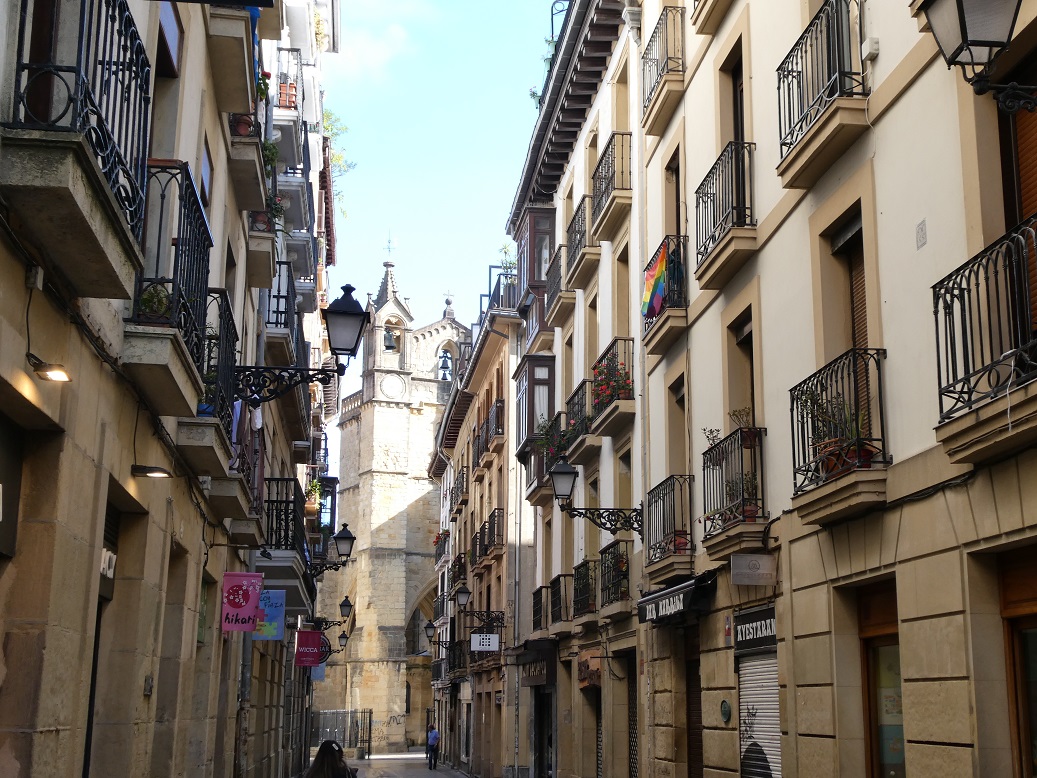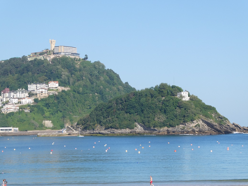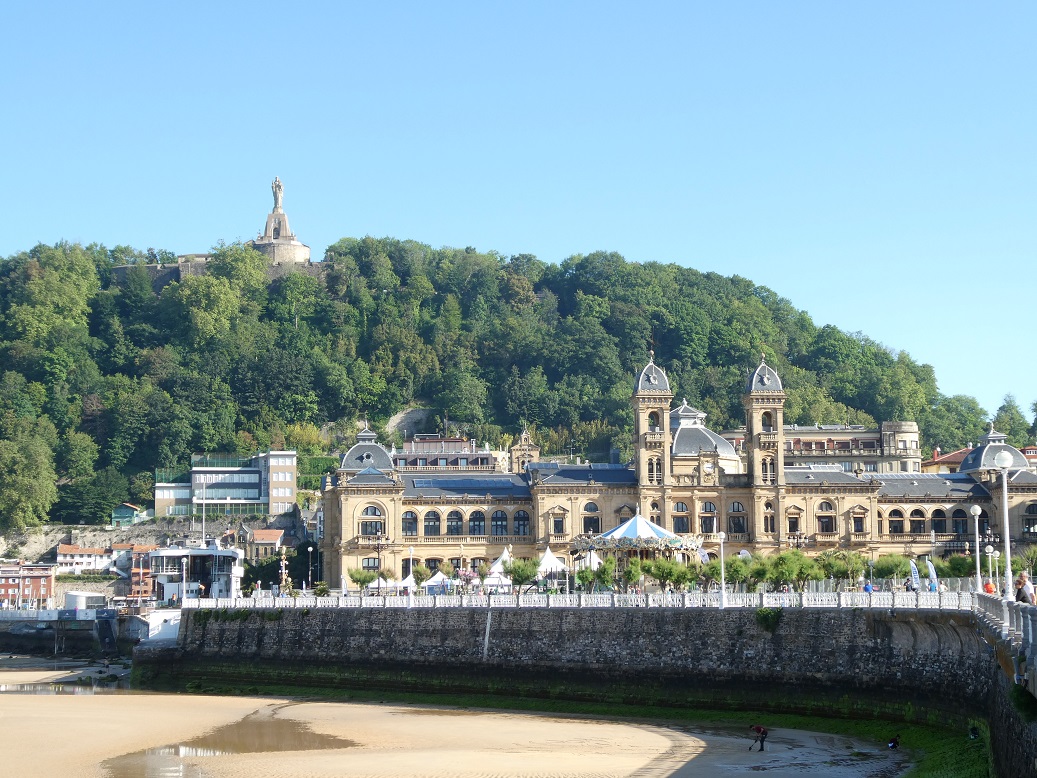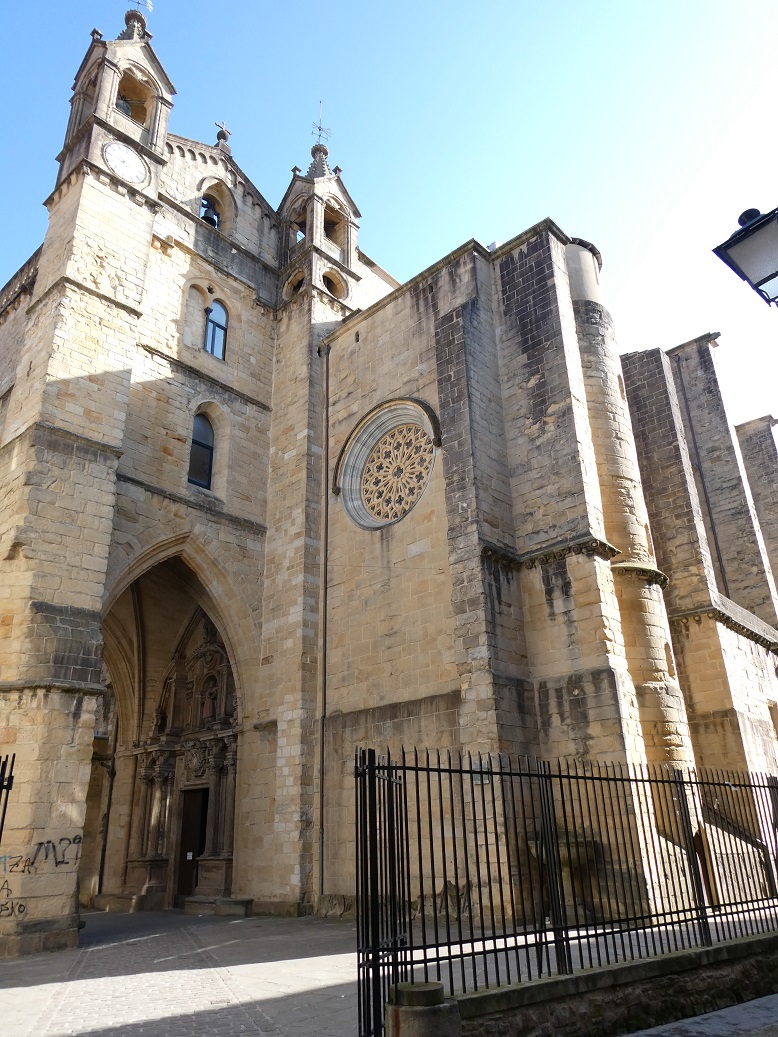 It’s taken a month’s worth of blog posts to describe our two-week trip to Spain, but that’s what slow travel is all about. No longer are we limited to 10 days of vacation, where we had to jet across the Atlantic Ocean to Europe and then try to jam in as many destinations as possible to make the journey a good value. This trip began and ended as do most of ours these days by a walk to/from our local train station, a relaxed meal onboard with time for reading and listening to music before exiting the train at a downtown station and walking to our overnight accommodations. For this trip’s last night in Spain we were in San Sebastián (cathedral photo on the left), one hour south of the French city that we found to be very similar, Biarritz including lots of Bs: Beach, bay, Basque, and beauty.