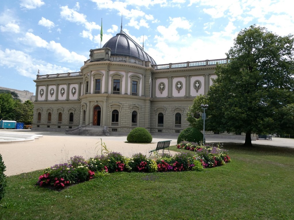 On the lakeside of the Palais grounds is the city’s conservatory and botanical garden that contains 14,000 plant species from around the world. An advantage of our summertime visit was seeing (and smelling) so much in bloom. Right down the shoreline from there was Parc de la Perle with remnants of a 2000-year-old Roman villa much like one we had seen earlier in the week directly across the lake.