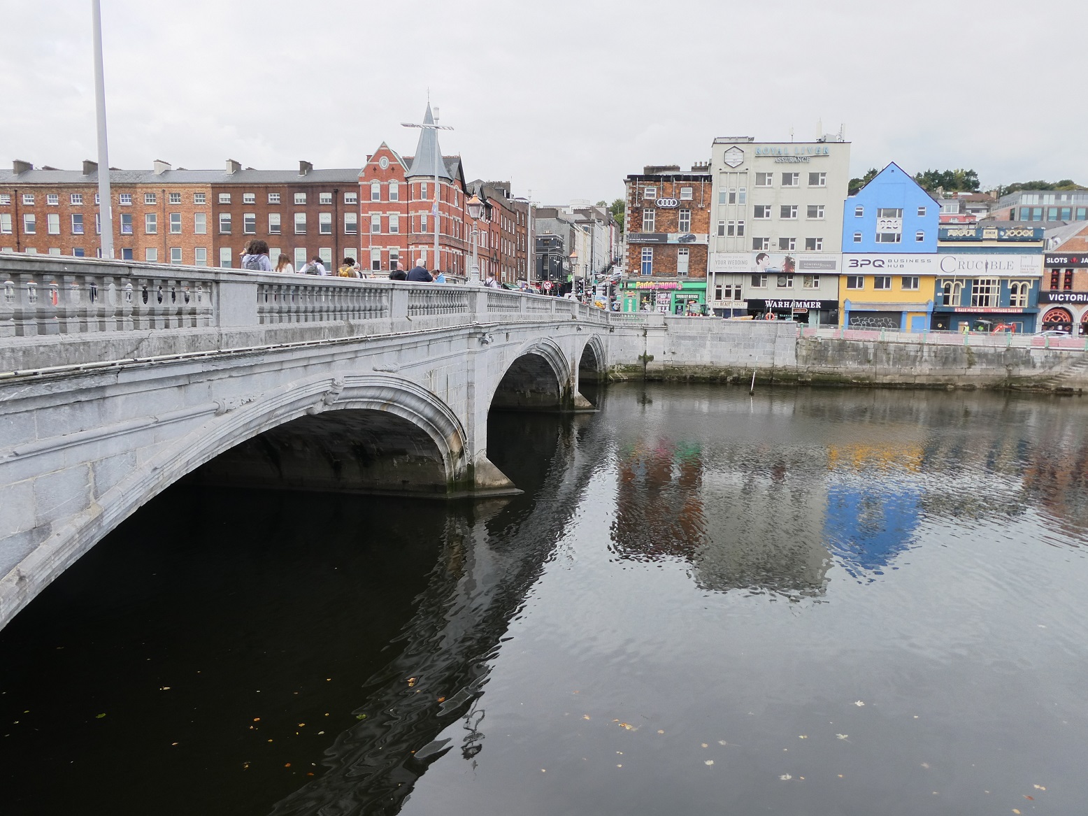 Going back towards the market we walked down St. Patrick’s Street, the main shopping thoroughfare that leads to the St. Patrick’s bridge built in 1861. That put us on the other side of the Lee River where we wanted to see something that we’d heard that all of the locals “look up to”. St. Anne’s Church was built in 1722 but the star attraction is its tower that at 36.6 meters tall (120 feet) can be seen from many parts of the city. People “look up to” the tower because there’s been a clock on all four sides since 1847 and the 8 bells inside have been ringing since 1750, sometimes at irregular hours. For a fee you can climb the 132 steps up to the belfry and try your hand at producing a melodious sound. We were happy to stay on the ground and take a photo.