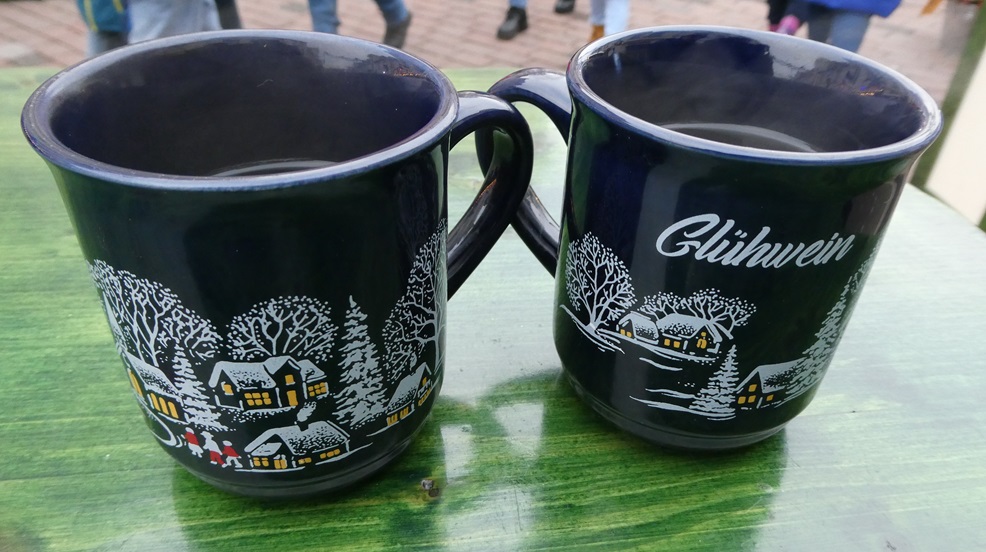 We found the markets even more enchanting after dark with their colorful, sparkling lights easily seen by us early birds since sundown in Berlin in December is around 4:00 PM. Most had no entrance fee and while you had to pay a deposit for an empty mug (2€ to 5€) to be filled with steaming mulled wine (4€ or 5€), it was refunded when returned to the bar. Visiting Germany at this time of year was a great way to be emerged in the festive season. Merry Christmas!