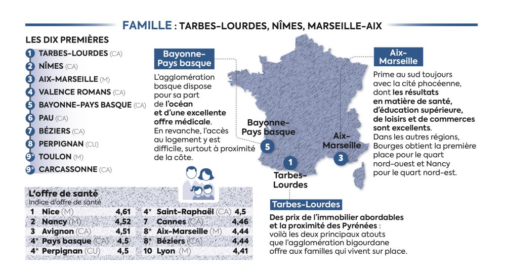 But the good news doesn’t stop there. Carcassonne made it into the top 10 for the category “Family”. The magazine put the city at the #9 position because of its “offerings of education and higher ed, health care, distance to the coast and to the mountains, and property prices”. Interestingly, the urban area of Tarbes-Lourdes made it to the top spot of “Family” for two of those same reasons: affordable property prices and proximity to the mountains.