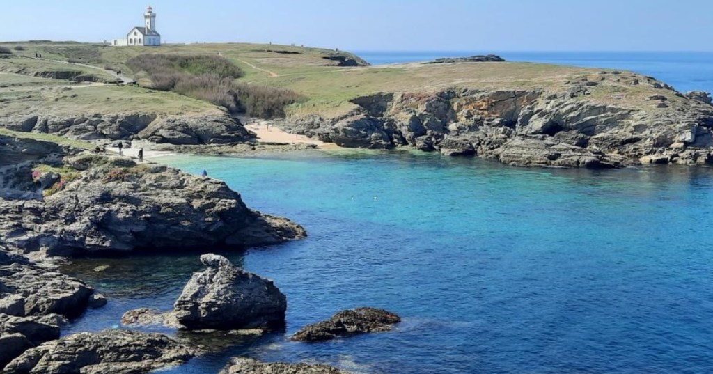 The final stop is up in Brittany at Poulains that has both sandy and pebbly sections of the beach across which, at low tide, you can walk to the island ‘Îlot des Poulains’. I read that French actress Sarah Bernhardt spent some summers here in a stone fortress at the end of the 1800s to escape the fervor of Paris but all that remains is a seat carved into the stone wall where she sat awaiting a return boat to the mainland.