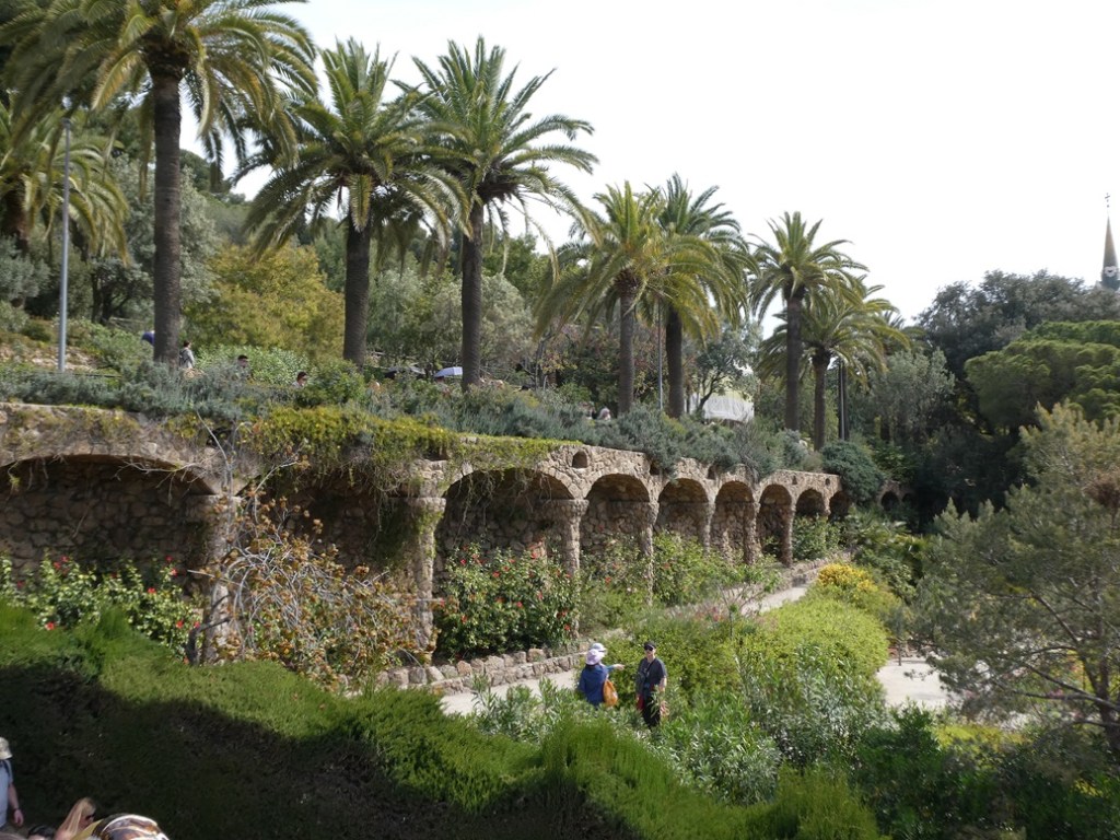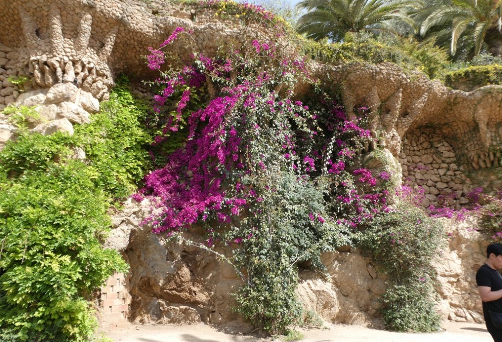 The travel brochure promised “Mediterranean sunshine and dream destinations…charm and authenticity…Gothic churches, fishing villages and exuberant nature,” but first we had to get to the departure port of Barcelona. When we’d been there before our concentration was on the works of Gaudi but we missed one huge display, Güell Park. This UNESCO World Heritage Site is known for its mosaics (today’s featured photo across the top), salamander fountain, and sprawling terrace with city views but we were equally impressed with the gardens. We forgot to buy the 10€ advance purchase entrance tickets so we opted for a 30€ per person guided tour that got us into the park on the one day that we were available. With that tour complete it was time to head back down to the port for our overnight sailing to the island of Ibiza.