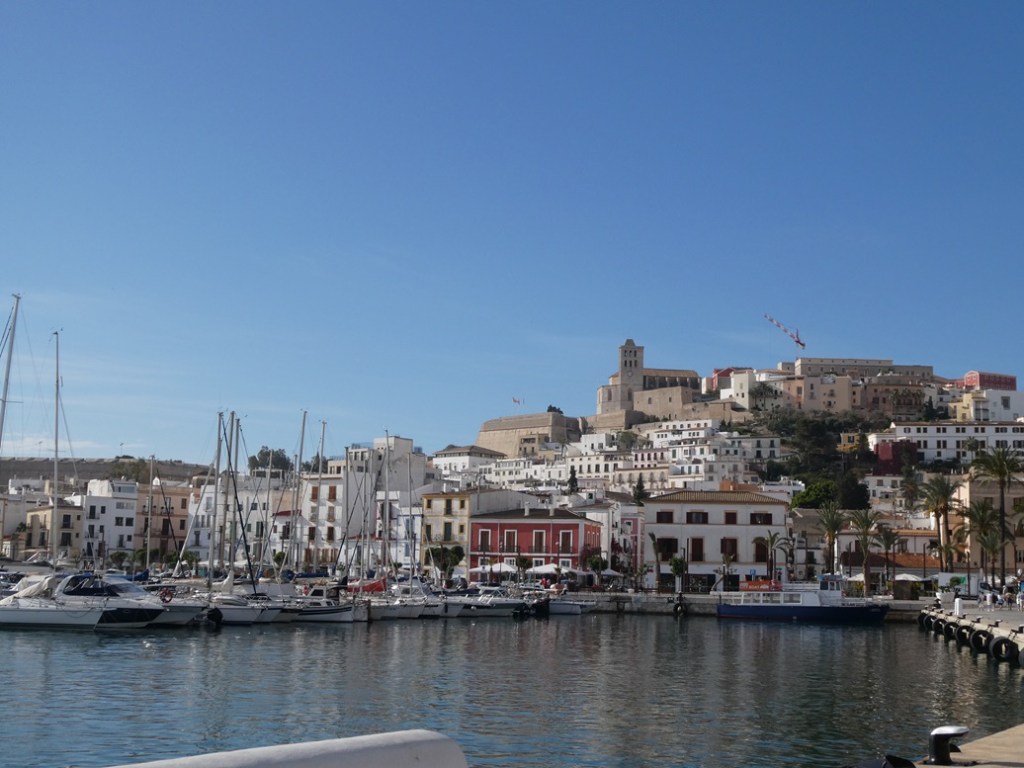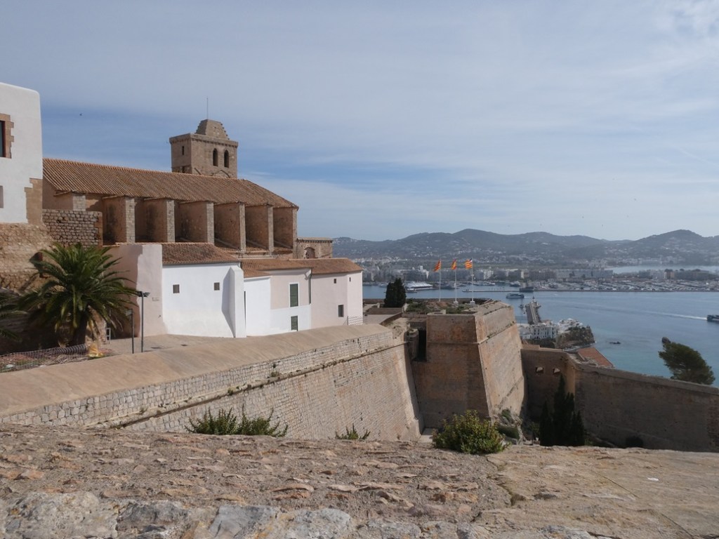 The only impression we had of Ibiza Town was “party central”, that is, night clubs, beach bars, and non-stop dancing from dusk until dawn. We knew, however, that this capital city had an old town, Dalt Vila (or “Upper Town” in Catalan), and that’s where we spent the afternoon wandering the narrow, cobbled streets. The town is enclosed by a 16th-century defensive wall that successfully kept out Berber pirates and other outside forces, including the French. The 13th century cathedral guards a gold and silver religious object, a monstrance, created in 1399. Unfortunately the cathedral was closed for renovation while we were in town.