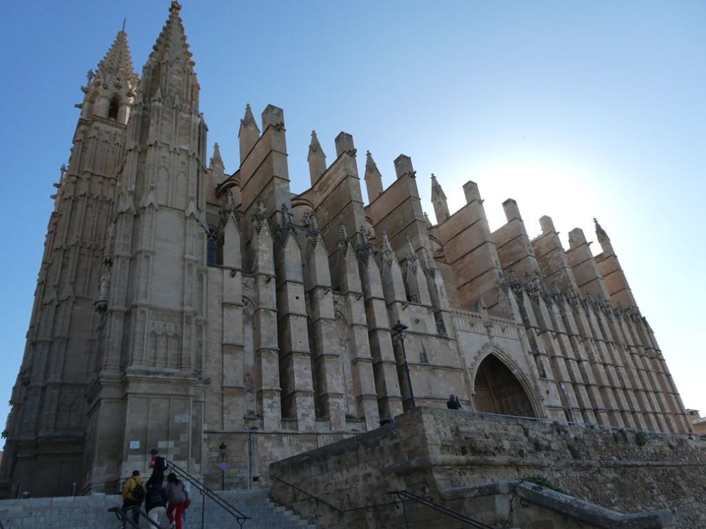 Sailing overnight put us the next morning in Palma, the capital of the island of Mallorca. As we were arriving you couldn’t miss the massive Cathedral right on the edge of the old harbor. The towers rise 14 stories above the building itself that covers the area of a football field. As we found in other Spanish cities, this cathedral was built on the foundations of a Moorish mosque beginning in 1229 and still contains stained glass windows from 1320.