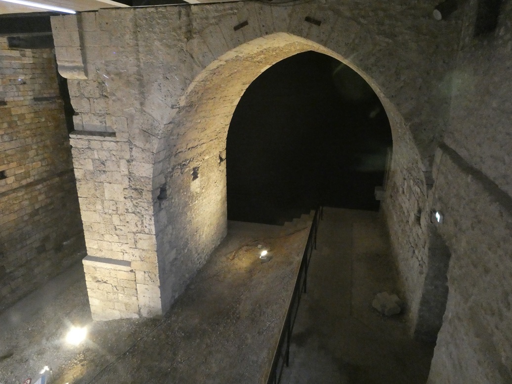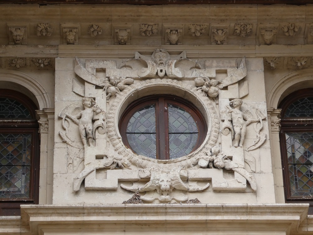 The path next took us across the center of the city to Place du Martoi, a big open square dominated by a statue of Joan of Arc on horseback created in 1855 by Foyatier. In medieval times this was the grain market, safely inside the town’s walls, remnants of which, including the gate Bannier we could see from the underground parking garage.