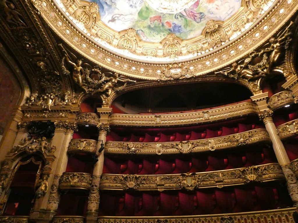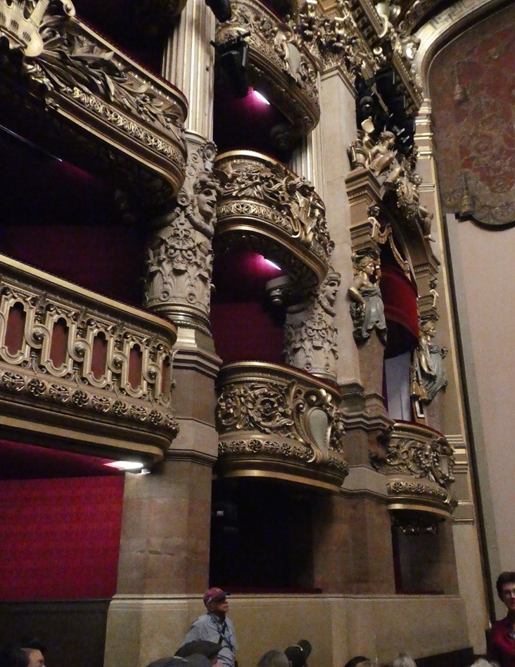 If you’re familiar with the novel or the musical, The Phantom of the Opera, you’ll know about the crashing chandelier, the underground lake, the Phantom’s opera box #5, and the stage, all associated with the Opera Garnier. Having done our homework, Bill and I knew that the auditorium, where 3 of these are located, is seldom open to tour groups. The day we were there, luck was on our side, so we did get to pause in some of the best seats in the house while the guide described our surroundings. Still, that lake (really a cistern or tank that traps groundwater) is only accessible to firefighters. As this was a daytime visit, all that’s left now is to buy a ticket to a show and spend A Night at the Opera!