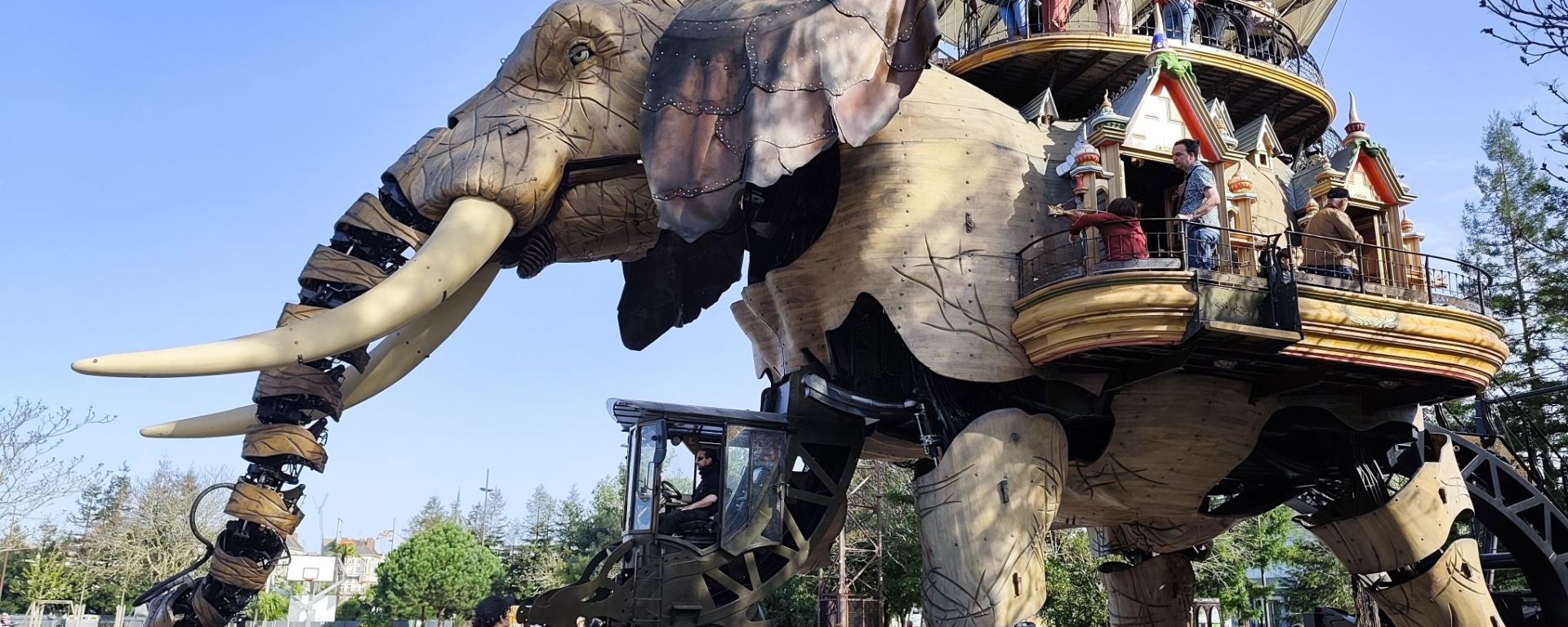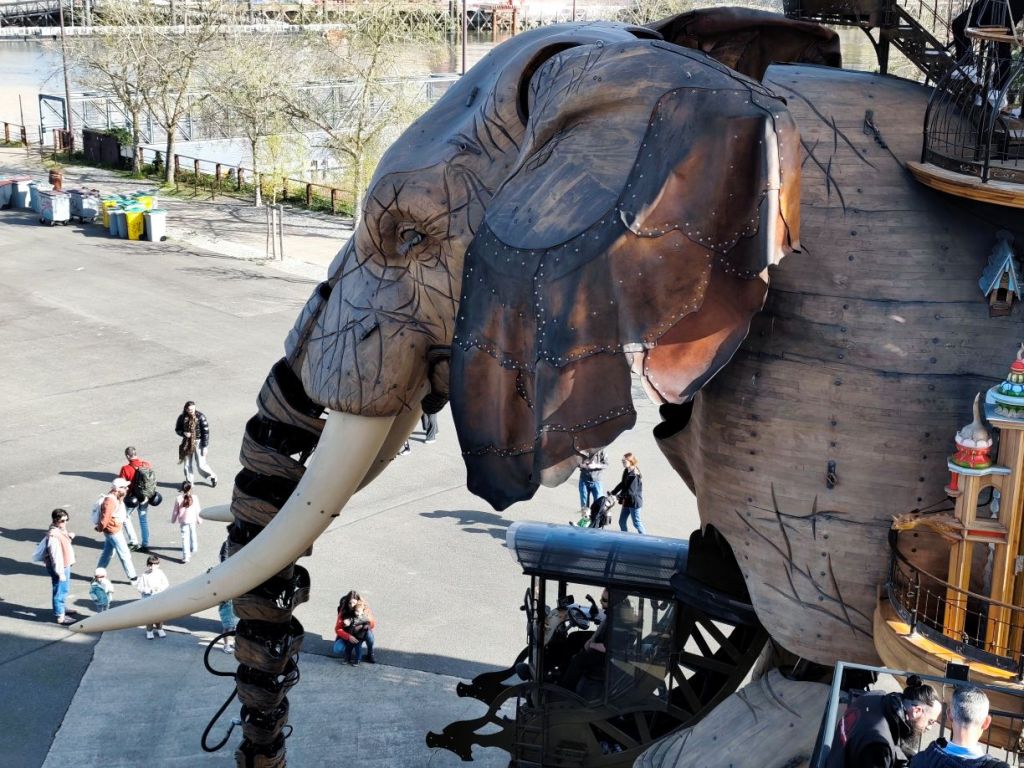 We’d been to Nantes before but only as an overnight stop between trains, never venturing much further than to a hotel right outside of the station. Now we were going to spend a week there, with plenty of time to explore this historic city and discover some of its Breton heritage, from the Château des Ducs de Bretagne to the numerous museums and the beautiful Jardin des Plantes. Given that our vacation apartment was a 5-minute walk from that château, that would have been a logical starting point for our first day but we had loftier plans in mind. That is, the Great Elephant (featured photo above) at the Machines de l’île, standing 12 meters (39 feet) high, 8 meters (26 feet) wide and 21 meters (69 feet) long!