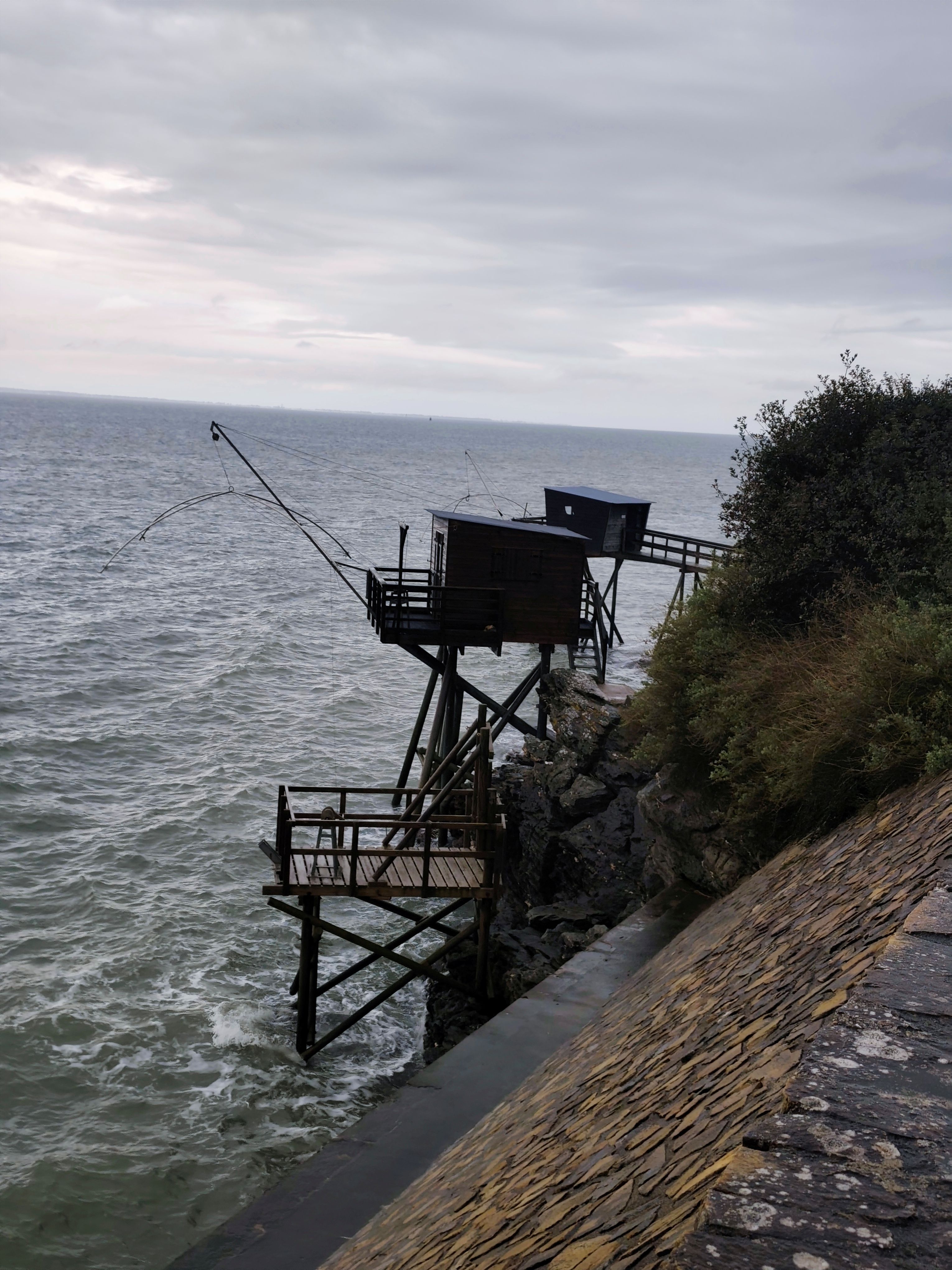 We continued walking beside the harbor on the Corniche de Gourmalon walkway, passing by rocky outcrops and small, sheltered beaches. Once we got past the Pointe aux Chevaux it was time to look for some wooden huts on stilts above the ocean with distinctive square nets called carrelets projecting from them. With this traditional fishing method, the nets are lowered into the water where they rest momentarily and are then quickly hauled back up to trap the fish inside. Since we were now about a half-hour walk from the station and we had a train to catch, we headed back into town. More photos in the gallery below.