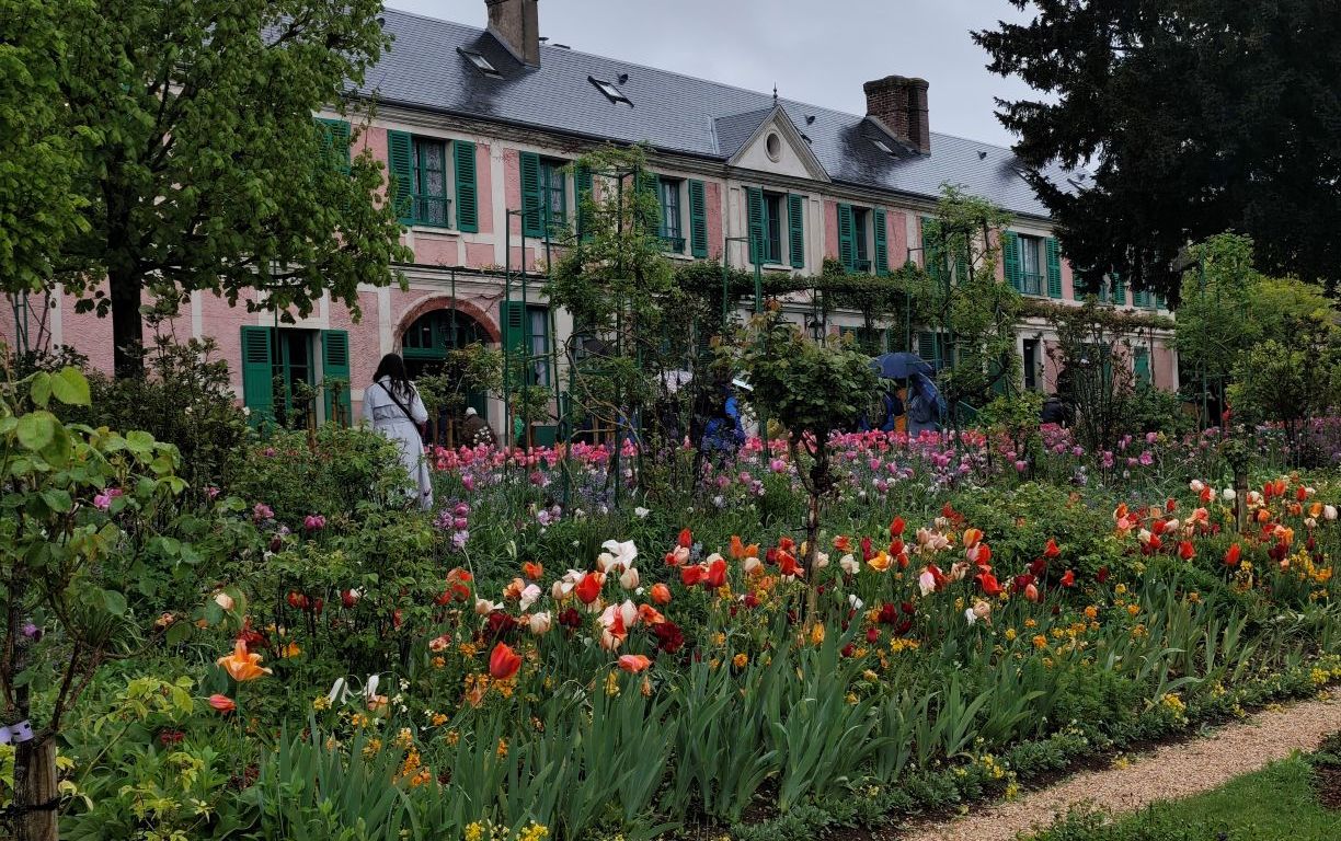 One advantage to living in France is that you’re never really all that far from Paris. In about 5 ½ hours we can travel from our downtown train station to one in the nation’s capital and walk from there to a hotel for that evening. With a dozen daily departures we can take our pick to be there for a 12:30 PM lunch, a 3:00 PM hotel check-in, or a 7:00 PM dinner. An overnight sleeper train would arrive in plenty of time for breakfast. That convenience means that it’s possible to make a connection and continue to a further destination such as Brittany, Champagne, or even London or Amsterdam. For today’s adventure we stayed in Paris but made a day trip into Normandy to spend the morning walking in the footsteps of artist Claude Monet in his beloved gardens of Giverny.