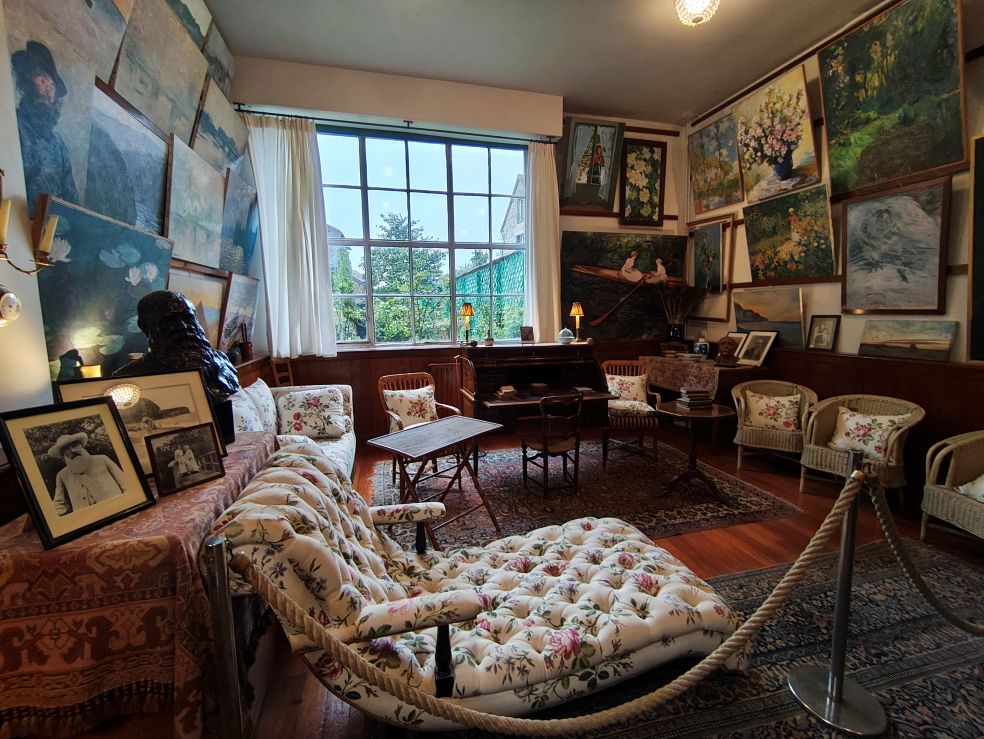 While we came to Giverny for the famed gardens, Monet’s house (today’s featured photo above) was a pleasant surprise. Its pink plaster and green shutters, the blue-tiled kitchen, the vibrant yellow dining room—it felt like a home still lived in, just as the guidebook suggested. And lived-in it certainly was since the artist and his wife shared their abode with eight children which could explain why his studio was moved to an exterior building!