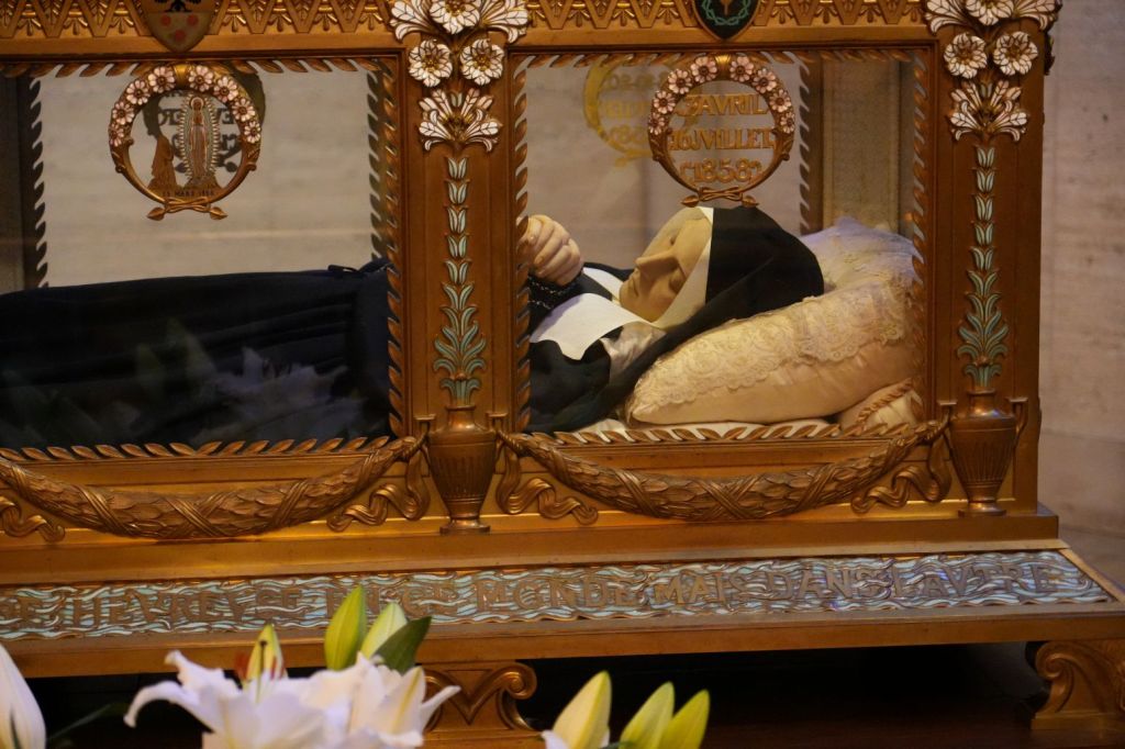 Having visited the town of Lourdes, we were familiar with the legend that Bernadette Soubirous saw an apparition of the Virgin Mary there in 1858. What we didn’t know is that to live a quieter life away from the pilgrimage crowds, she joined a convent in Nevers where she stayed until her death in 1879. Her body was then preserved, incorporating some wax coverings for aesthetic purposes, and is still on display in the former convent’s chapel, now known as Espace Bernadette Soubirous Nevers.