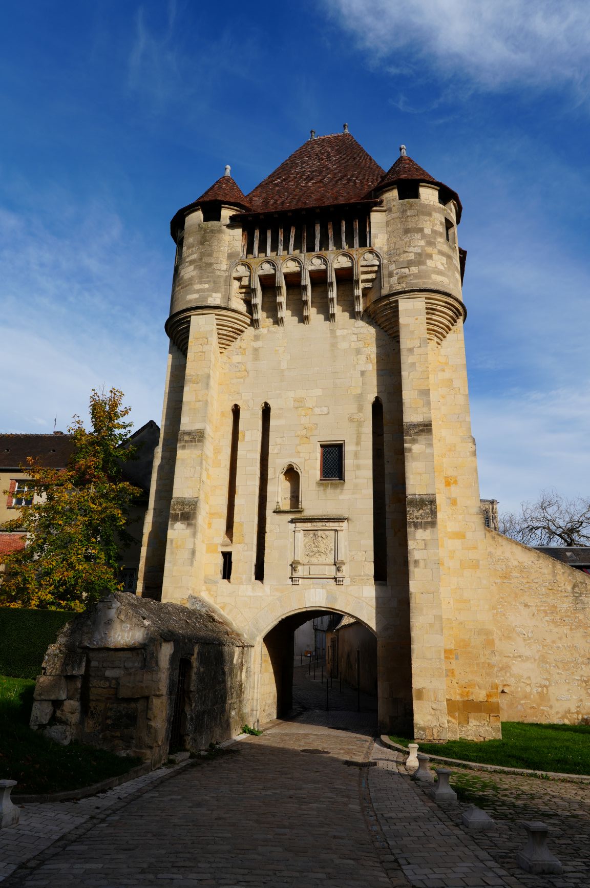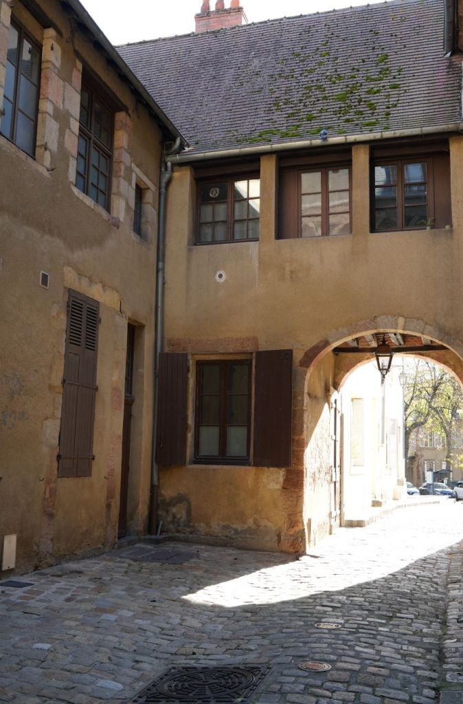 Like most medieval cities, Nevers was once encircled by a thick, stone wall, part of which still survives, stretching up from the Loire River and terminating at the gate, Porte du Croux (there’s a wider view as today’s featured photo across the top). In the 14th century this still had a drawbridge although today only the holes for the chains remain. This was a fitting passageway for us on our return to the train station and to our next stop.