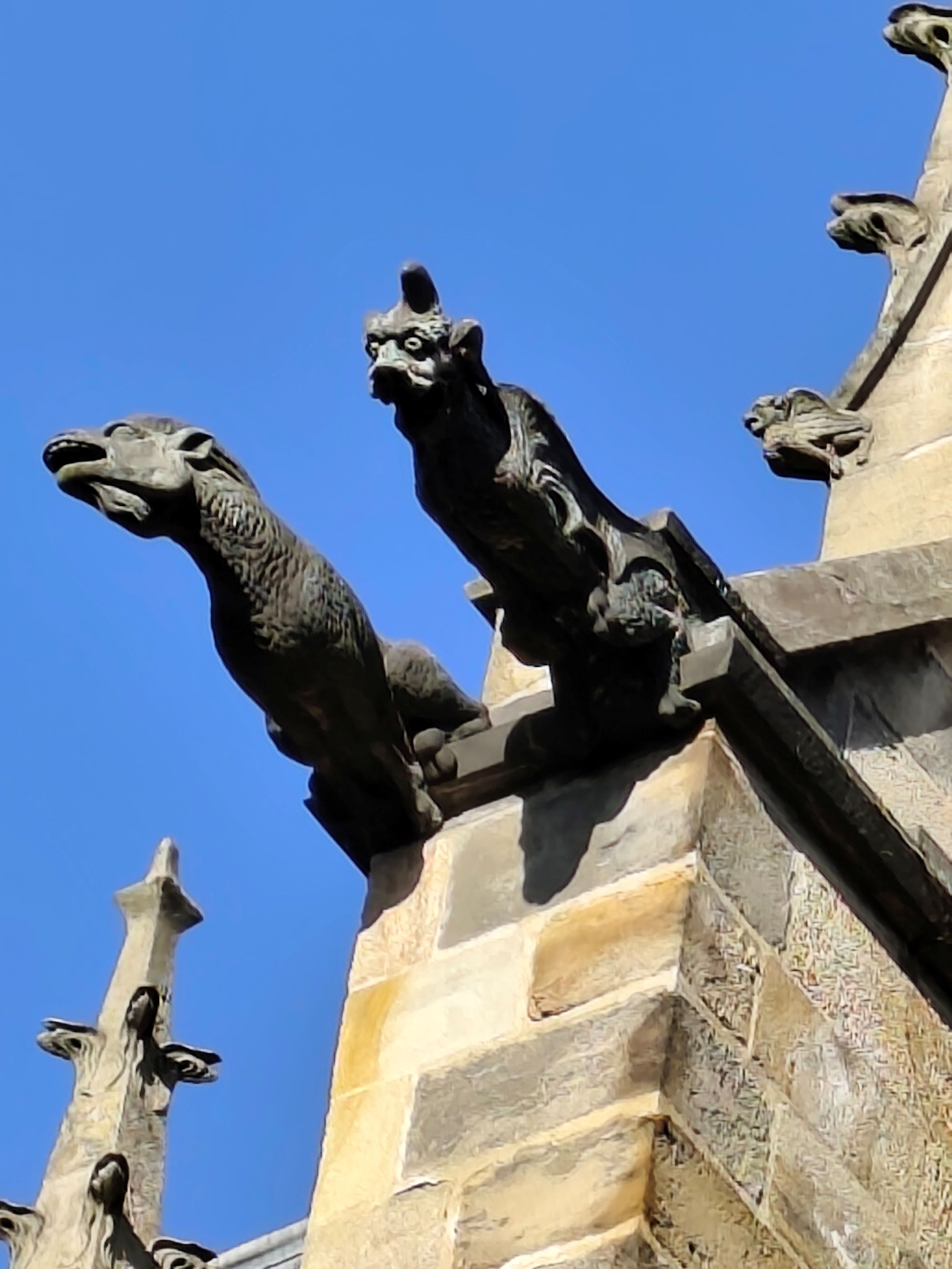 Someday we’ll have to publish a post about some of the French village names that sound funny to native English speakers. There could be a mature-audiences-only version but we’d prefer to keep it G-rated by including Sassy, Misery, or taking a train trip where you might be “Going to Die”. One dear to my heart, of course, would be seeing “Billy” that’s actually near the two towns in today’s post, although it no longer has an active station. Last week we talked about our time in Vichy and since we had the chance to take a couple of day trips it sounded like fun to visit a place called Nevers and how could we go wrong with what one guide calls Moulins: “a charming city that beautifully blends history, culture, and art.” These gargoyles agree.