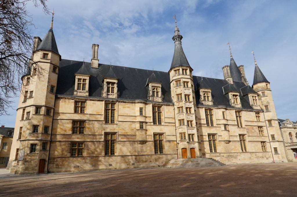 Crossing the city’s park that was used for duels in the 9th century, took us to the 13th century Cathédrale Saint-Cyr that houses a painting from the 1100s plus tombs from the 1400s in the crypt. Standing on this church’s front steps we could see over to another historical seat of power, the Palais Ducal. It was from this palace that the Dukes of Nevers ruled from the mid-15th century until the last-surviving duke sold the building to the city in 1810. Interestingly, while we have been to many well-known Loire Valley castles (such as Chambord and Chenonceau) this palace is apparently considered the first of the great Loire Valley châteaux.