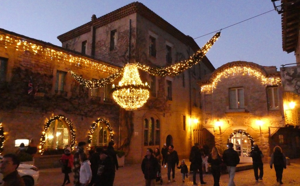 Note: Today’s festive photos were all taken in Carcassonne. The featured photo across the top is from a window display at a makeup store downtown.